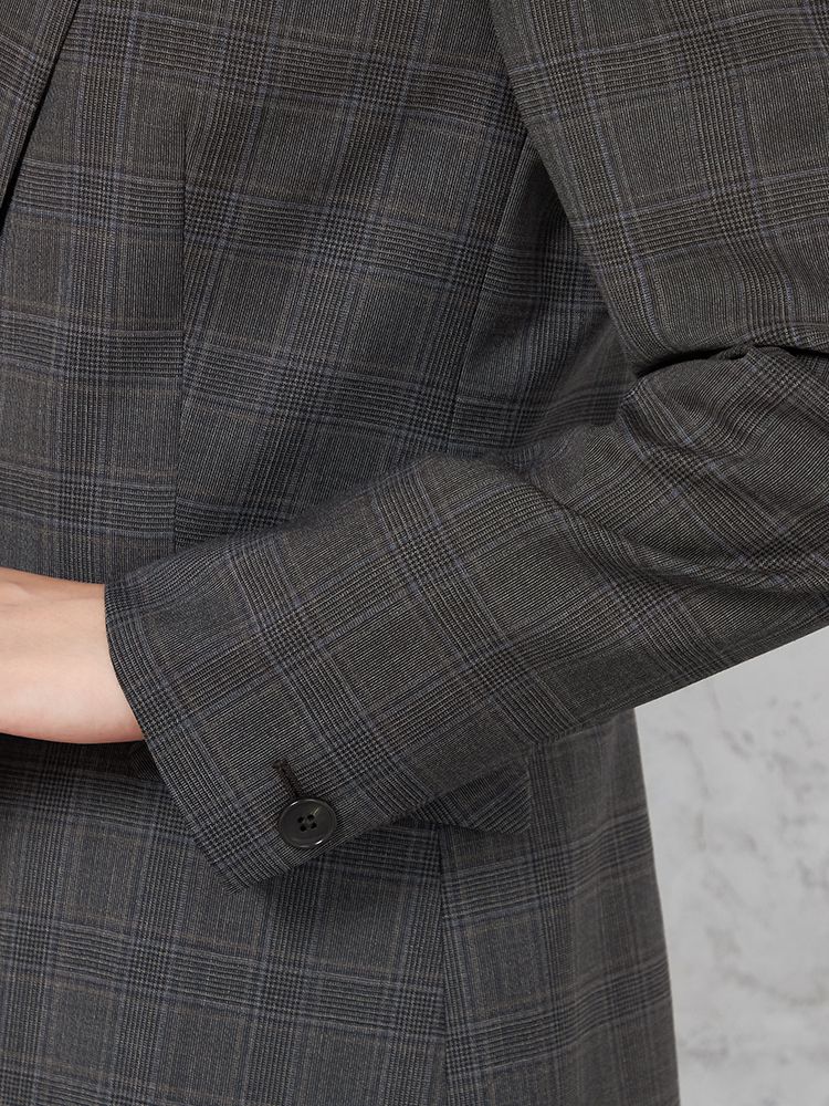切り込みが1本のセンターベントデザインです。細身でスッキリとしたシルエットが特徴で、快適な着心地を提供します
