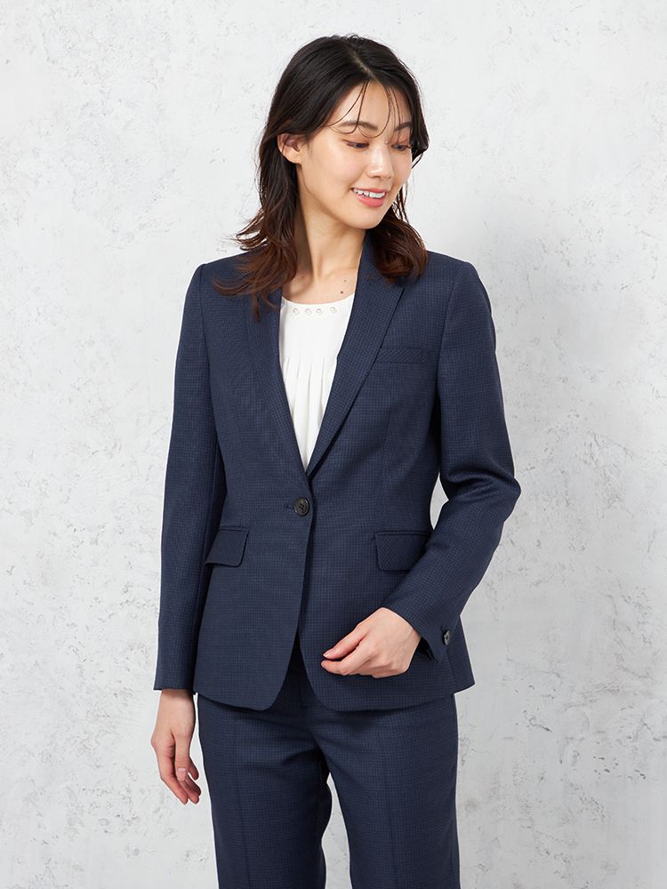 1つボタンのデザインで、シンプルかつスタイリッシュな印象を与えます。洗練されたシルエットが特徴です。