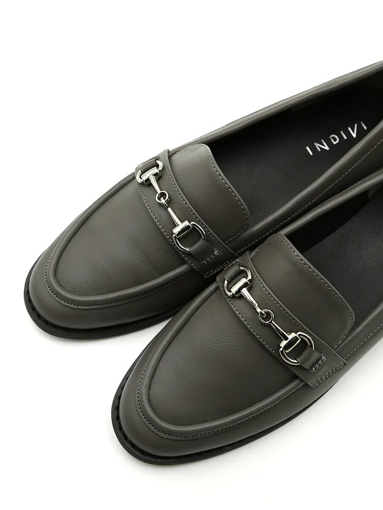 【INDIVI】ローファー メタルビットローファー ブラック/チャコールグレー 通年【レディース】(C.グレー)