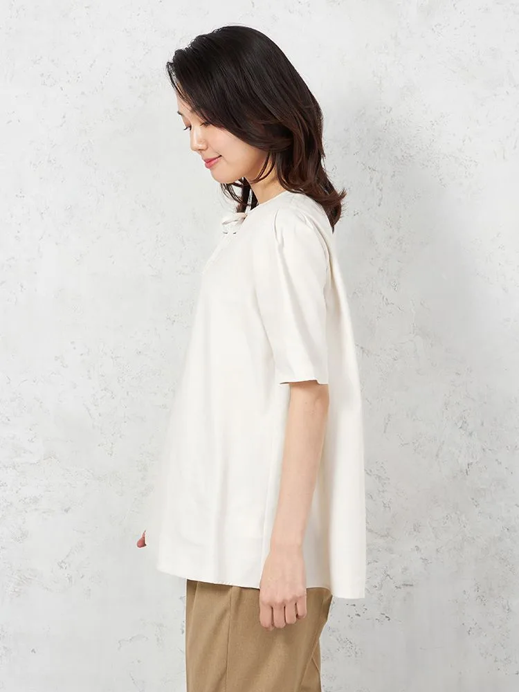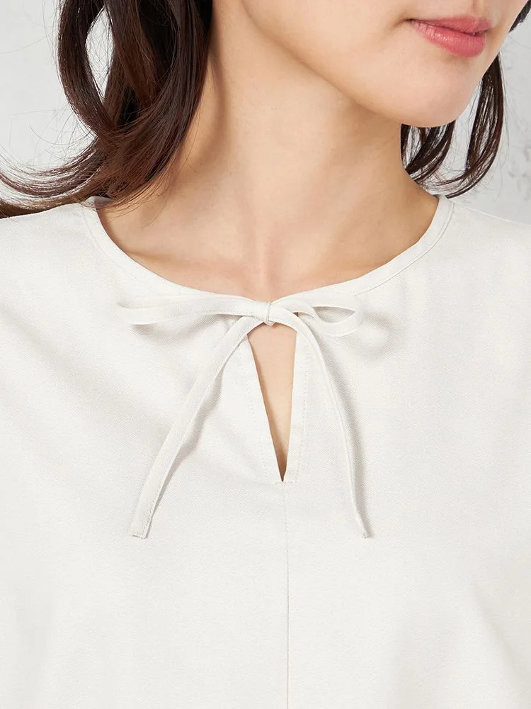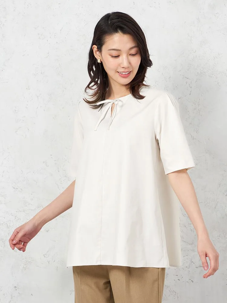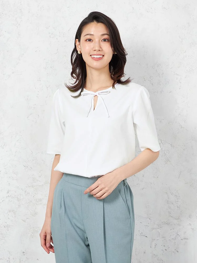 • L.グレー 【UVカット】半袖 細リボンブラウス 遮熱 透け防止 形態安定 無地 SOFFICE 春夏【レディース】 1185770164