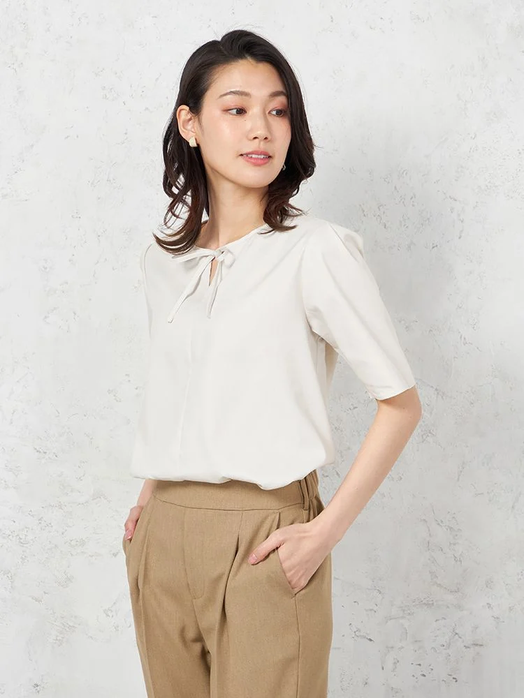 首元の華奢なリボンが可愛らしいブラウスです。