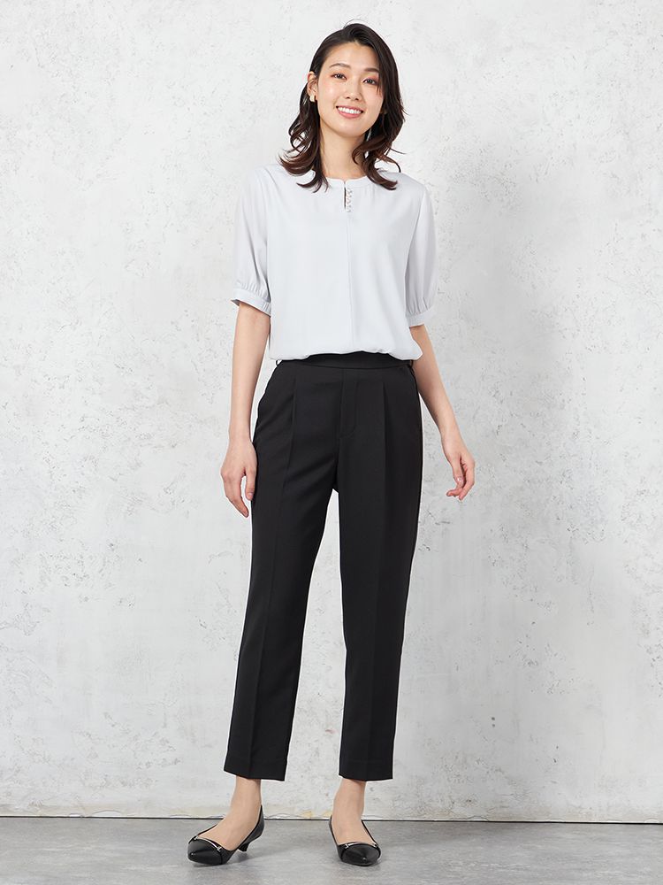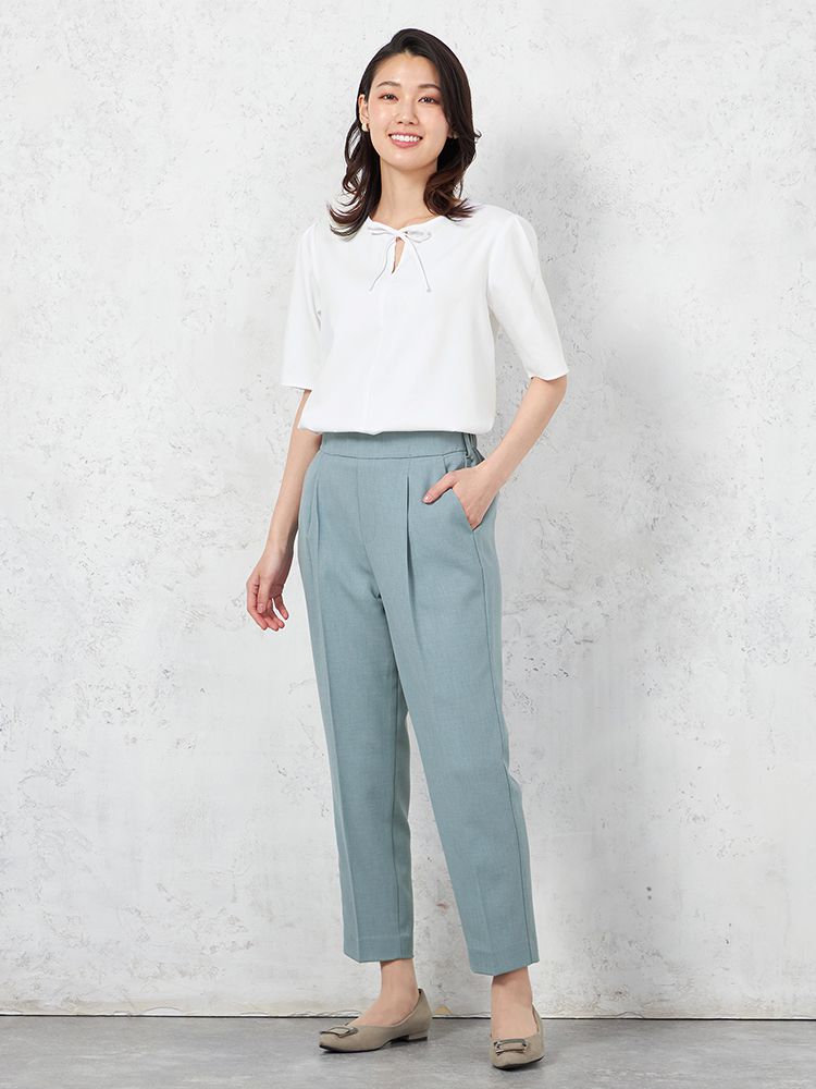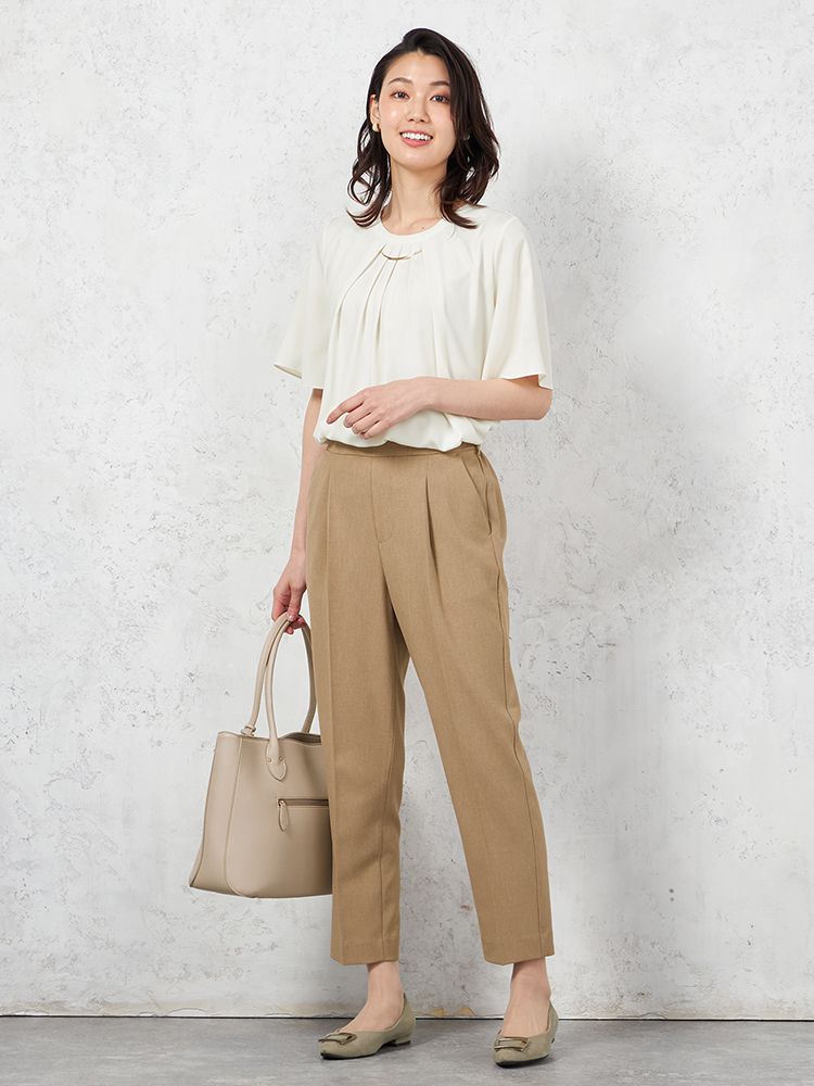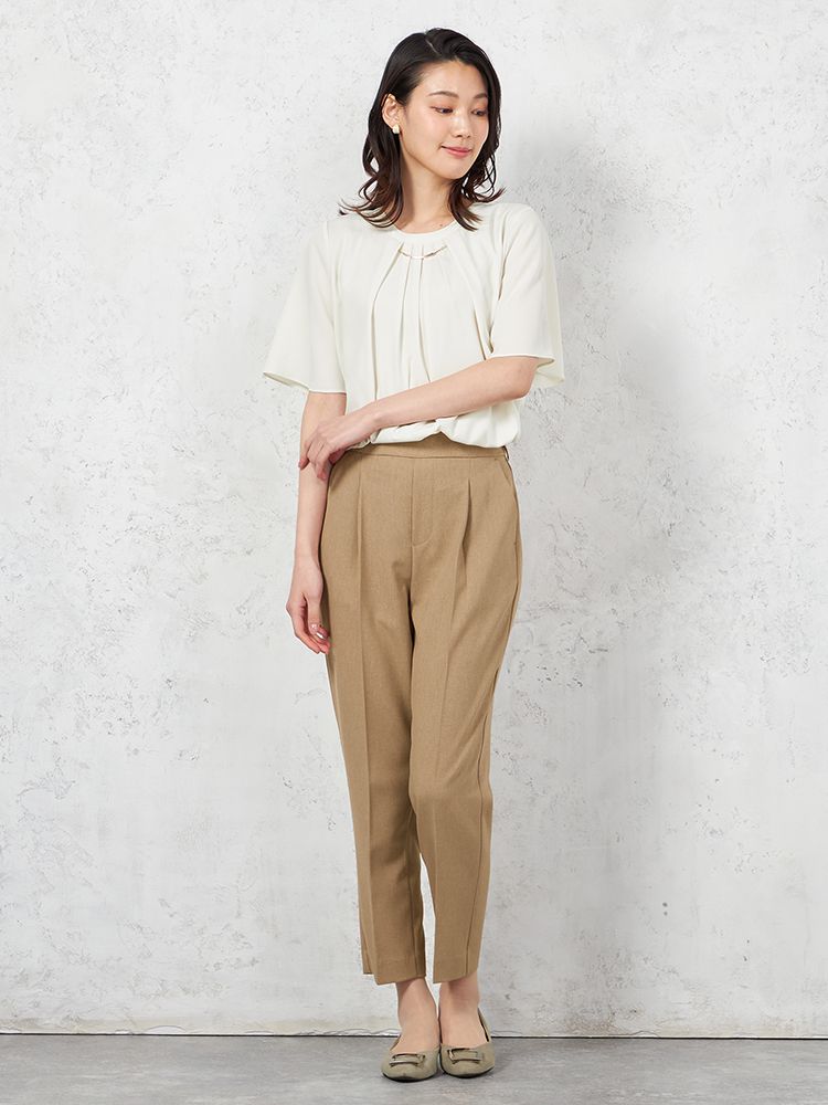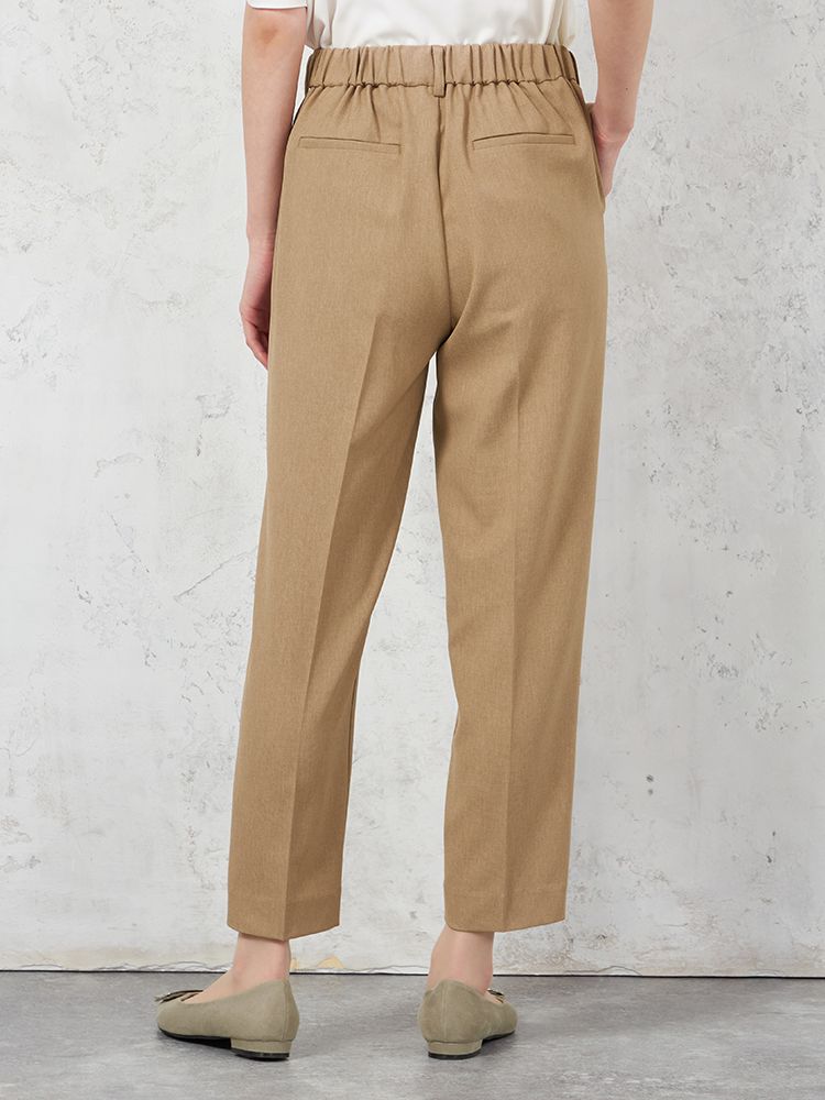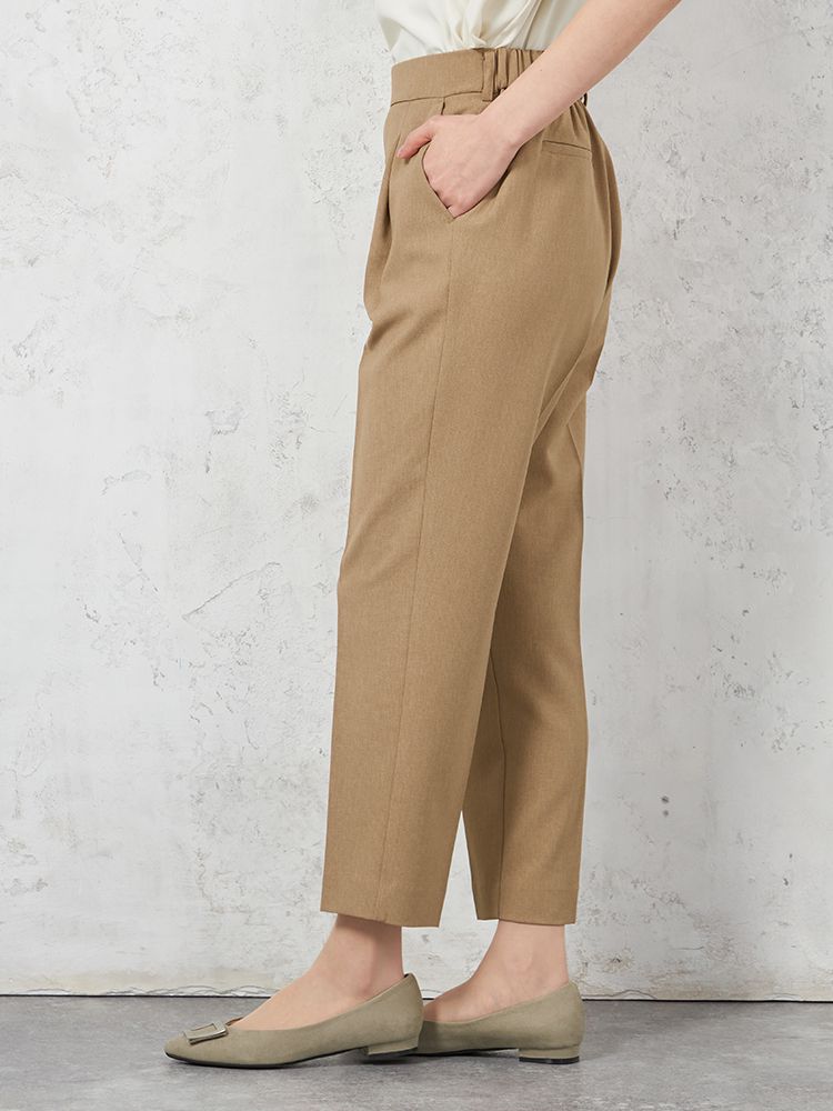腰回りにタックを施して、程よくゆとりを持たせたテーパードパンツです。