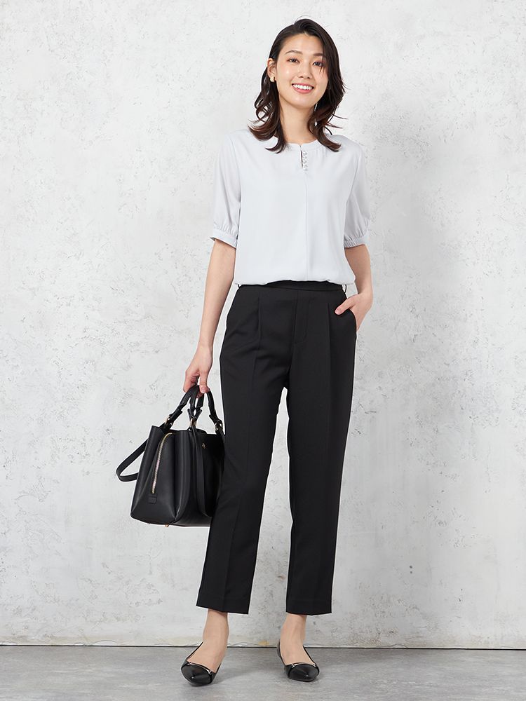 ONスタイルにぴったりなデザインで、ビジネスやフォーマルシーンで活躍するアイテム。どんな場面でも清潔感を演出。