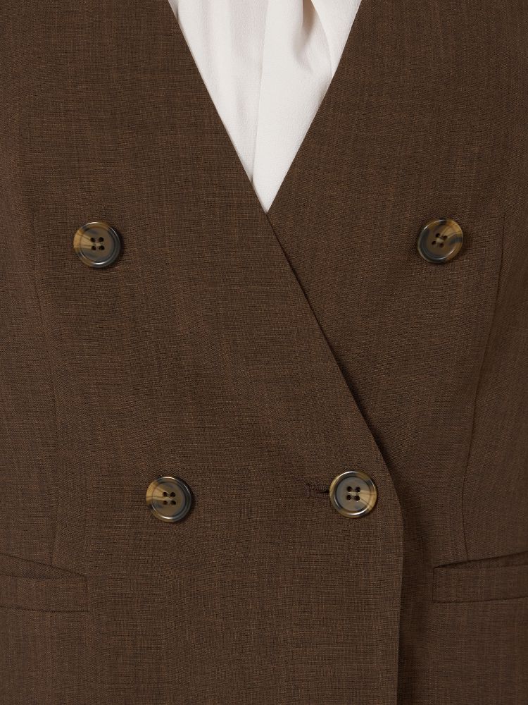 • ブラウン 【ウォッシャブル】ノーカラーダブルジャケット リネンライクメランジ生地 無地 SOFFICE 春夏【レディース】 1267701926