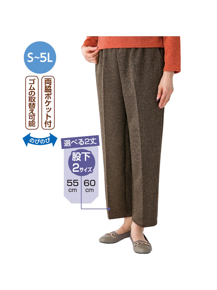 レディース おしりスルッとパンツ(デイリーカチオン) 股下55cm/婦人用/介護ズボン/はきやすい/ウエストゴム 【CF】(ブラウン)