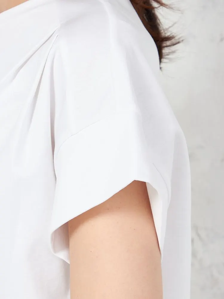 タックデザインが体のラインをさりげなくカバーしてくれます。