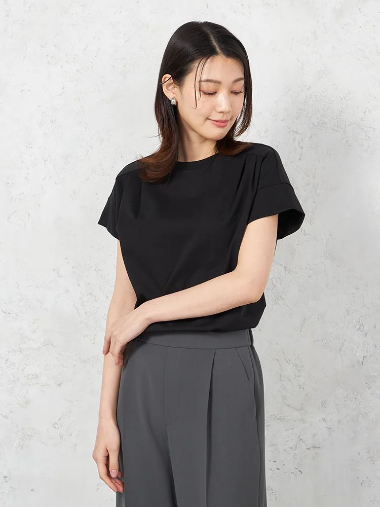 • ブラック 【INDIVI】ウォッシャブル ジャージフレンチスリーブカットソー 無地 春夏【レディース】 1285403525