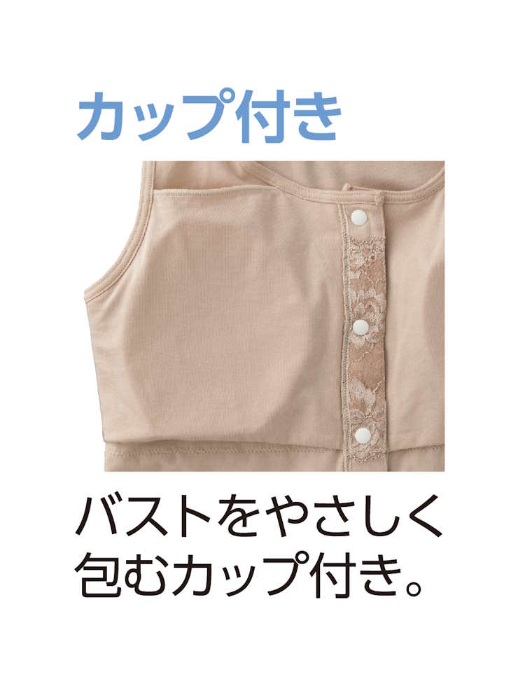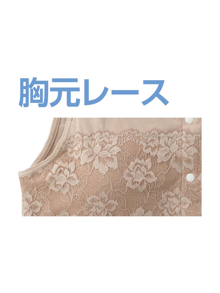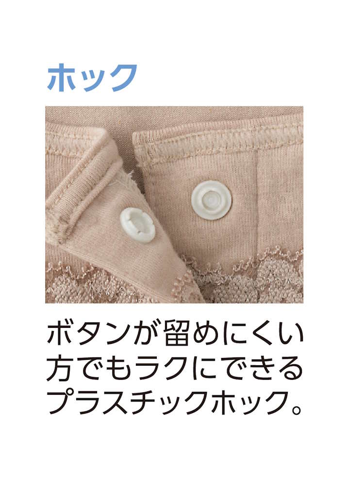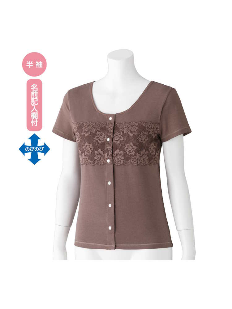 レディース カップ付レース半袖ホックインナー/婦人用/介護/前開き/肌着/カップ付 【CF】(ブラウン)