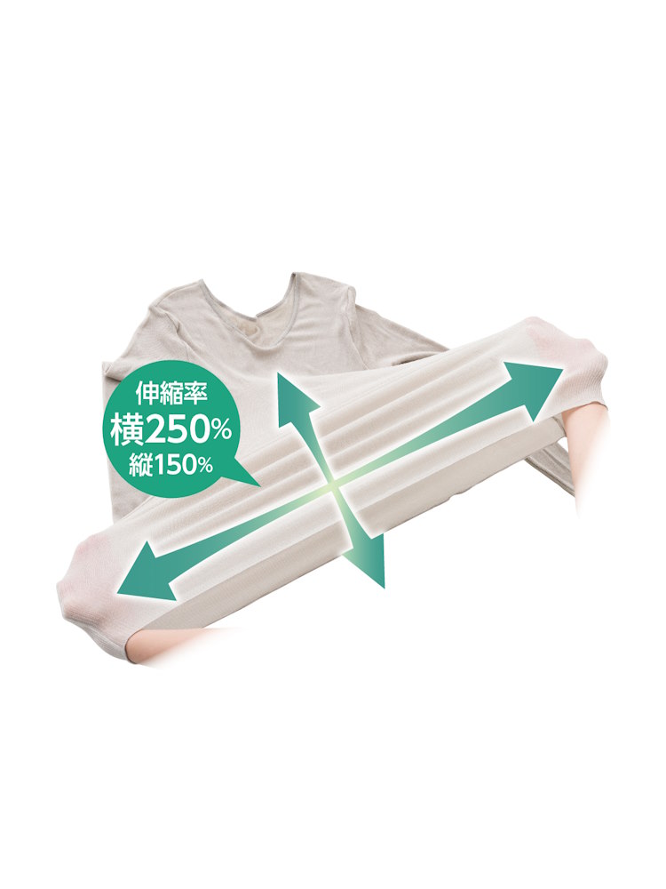 腕を曲げたままでも着脱らくらくの伸縮素材