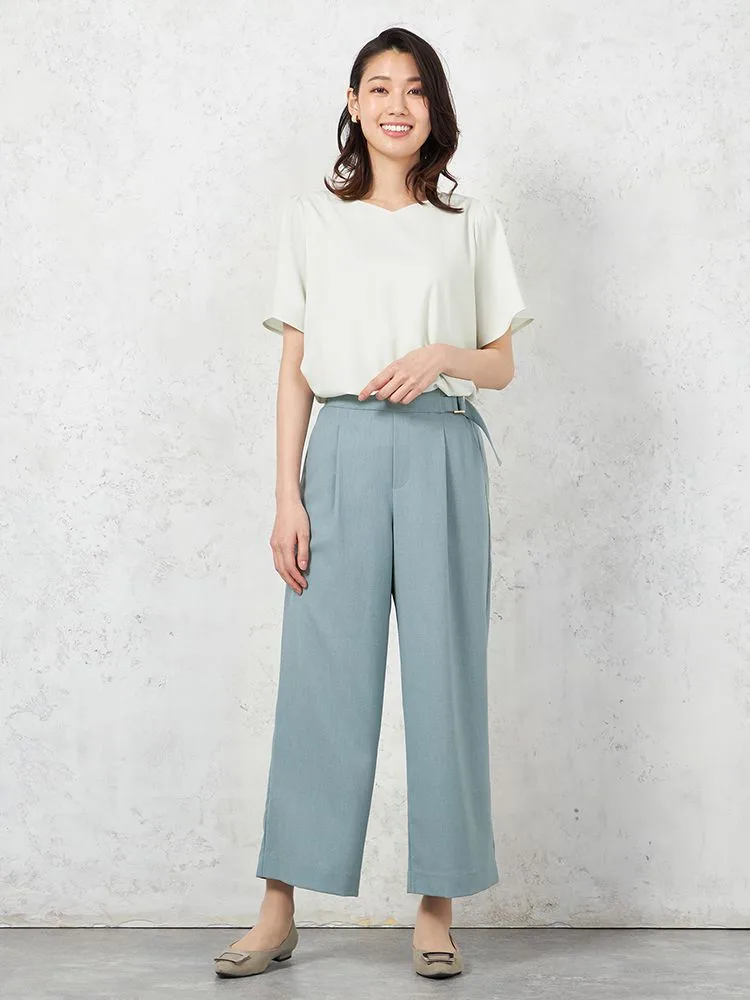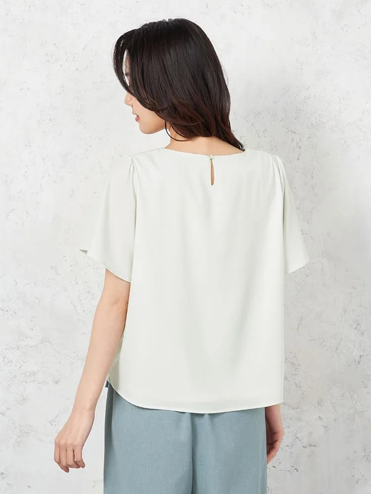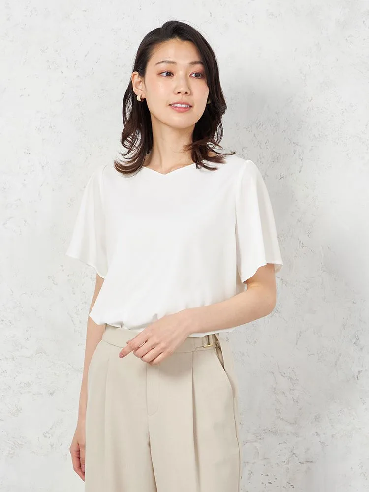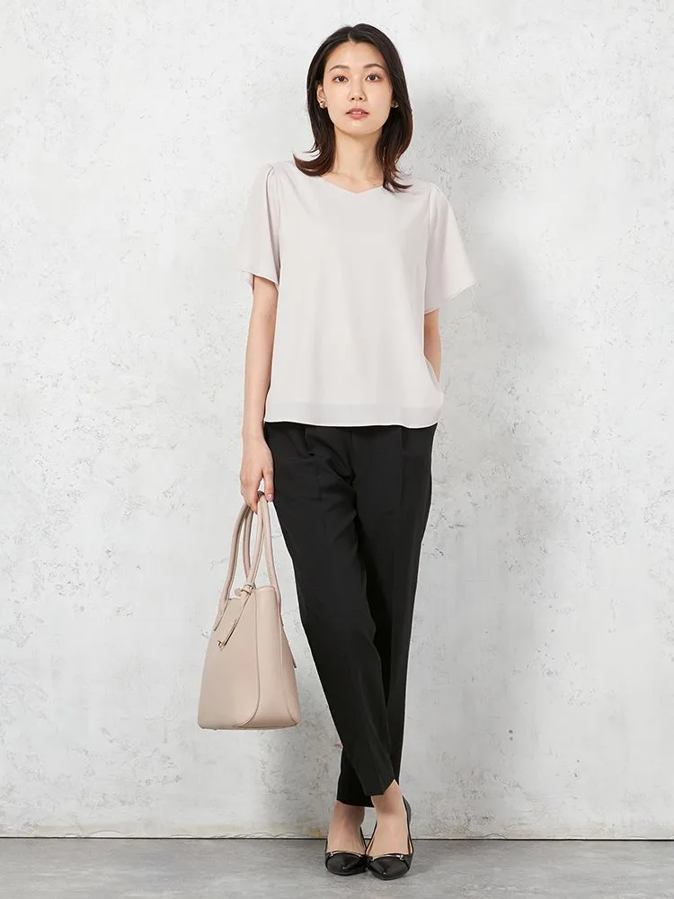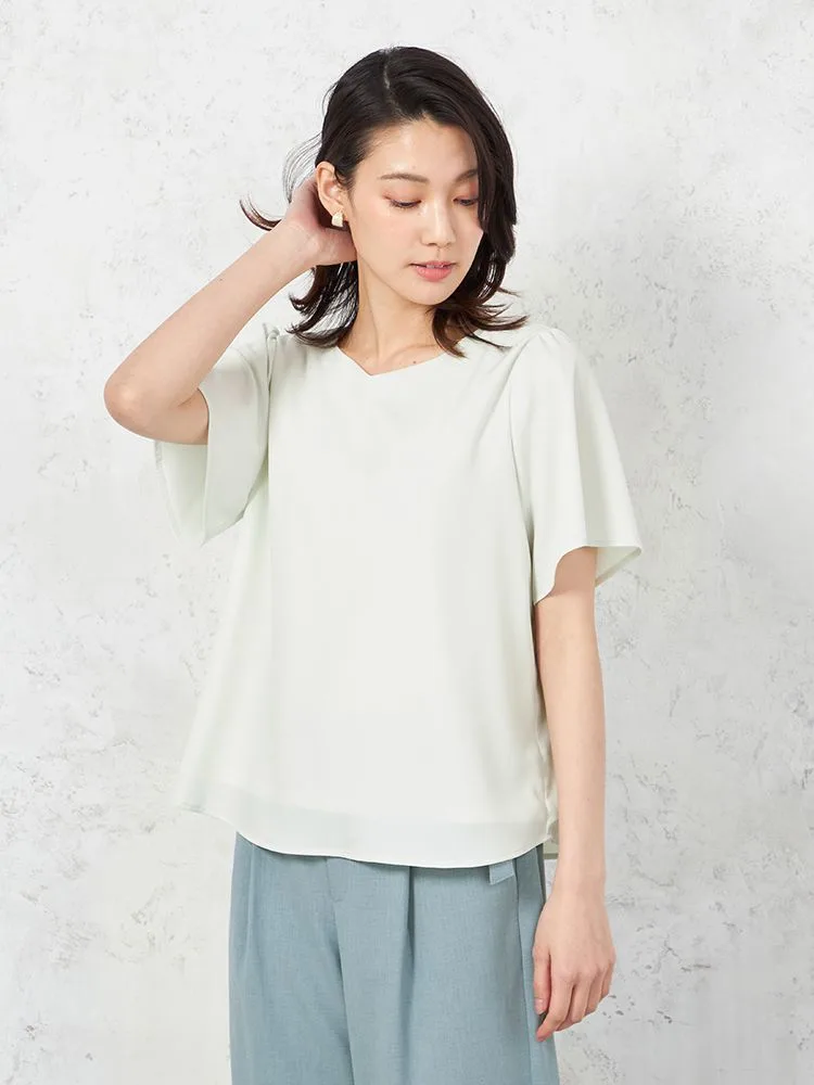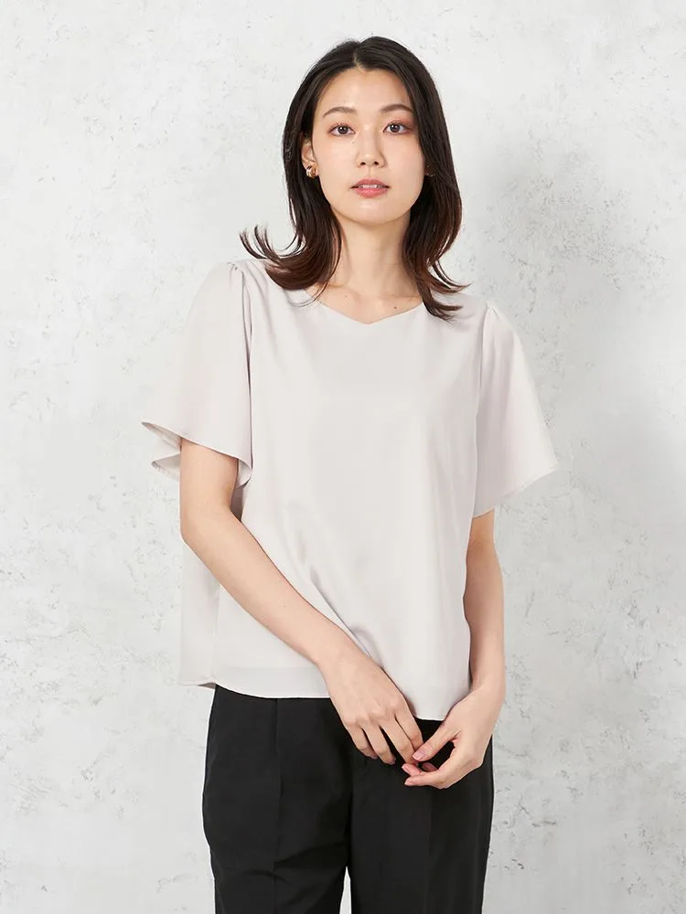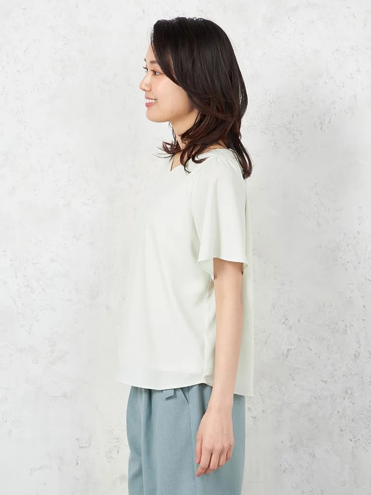【ウォッシャブル】半袖肩タックフレアブラウス防臭抗菌透けにくい無地SOFFICE春夏【レディース】