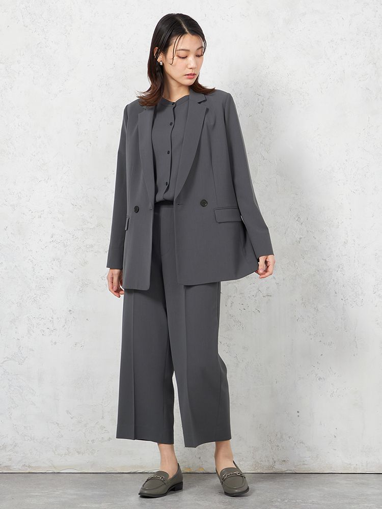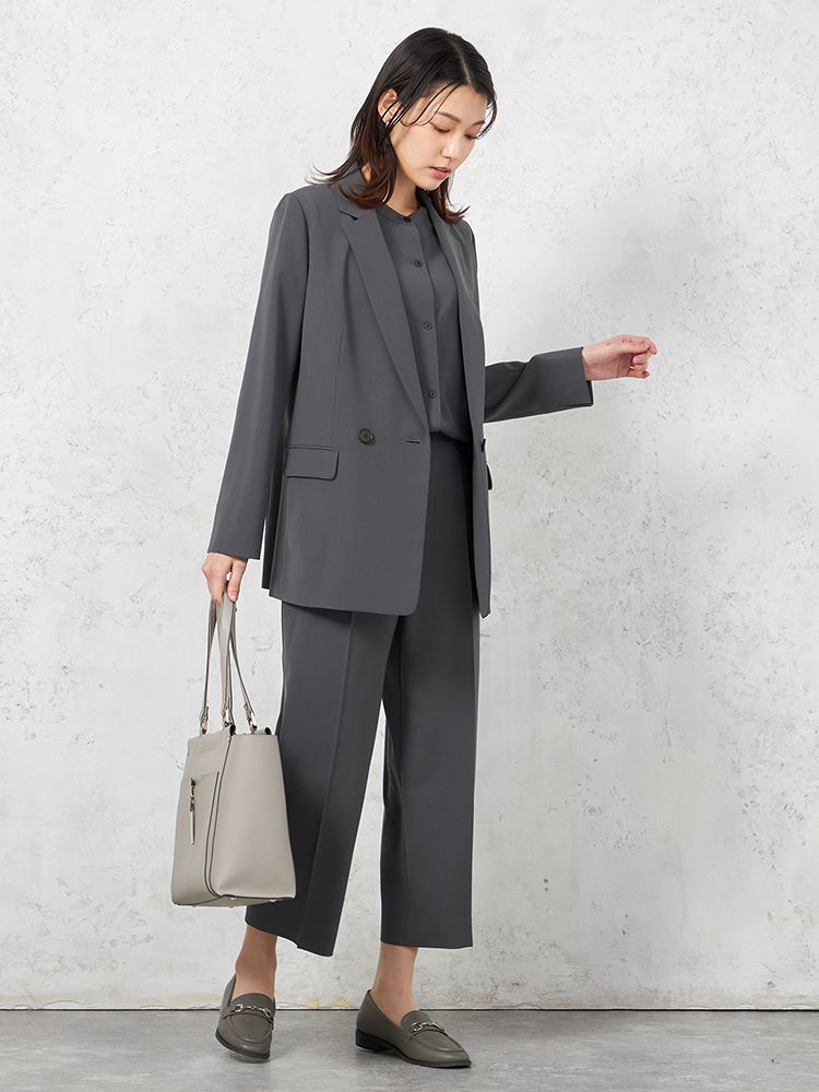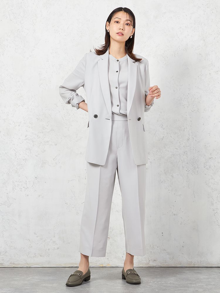 上下セットでコーディネートが簡単に決まるアイテム。シンプルでスタイリッシュな印象を与えます。