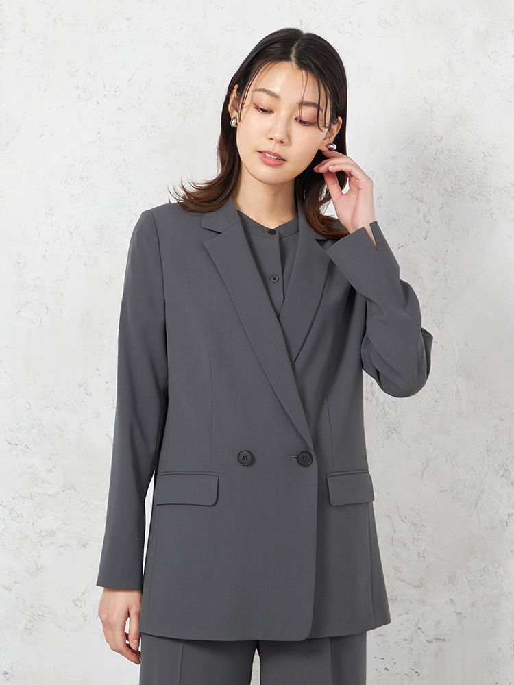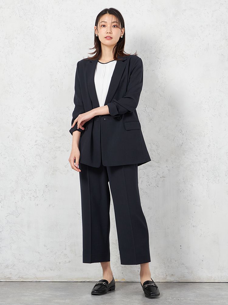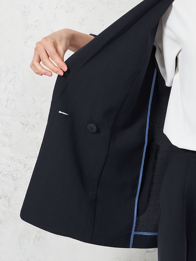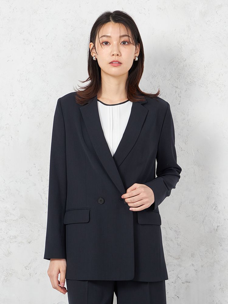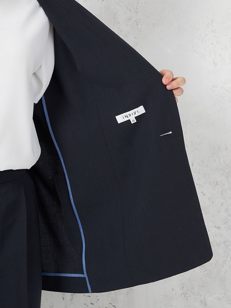 【INDIVI】ウォッシャブル クールツイスト ダブルジャケット 無地 【レディース】(ネイビー)