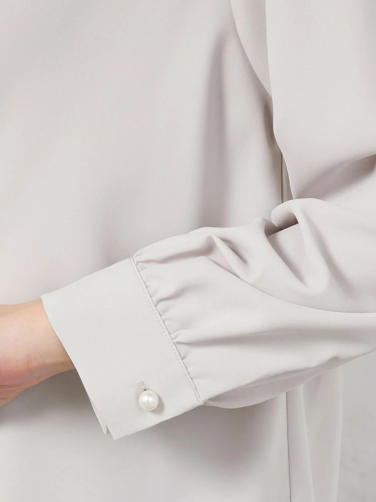 袖口にはパールボタンをあしらい、目の行きがちな手元に華やかさをプラスします。