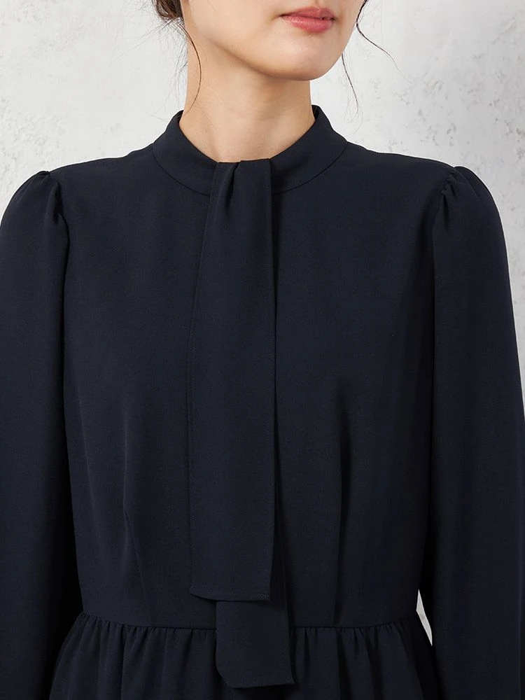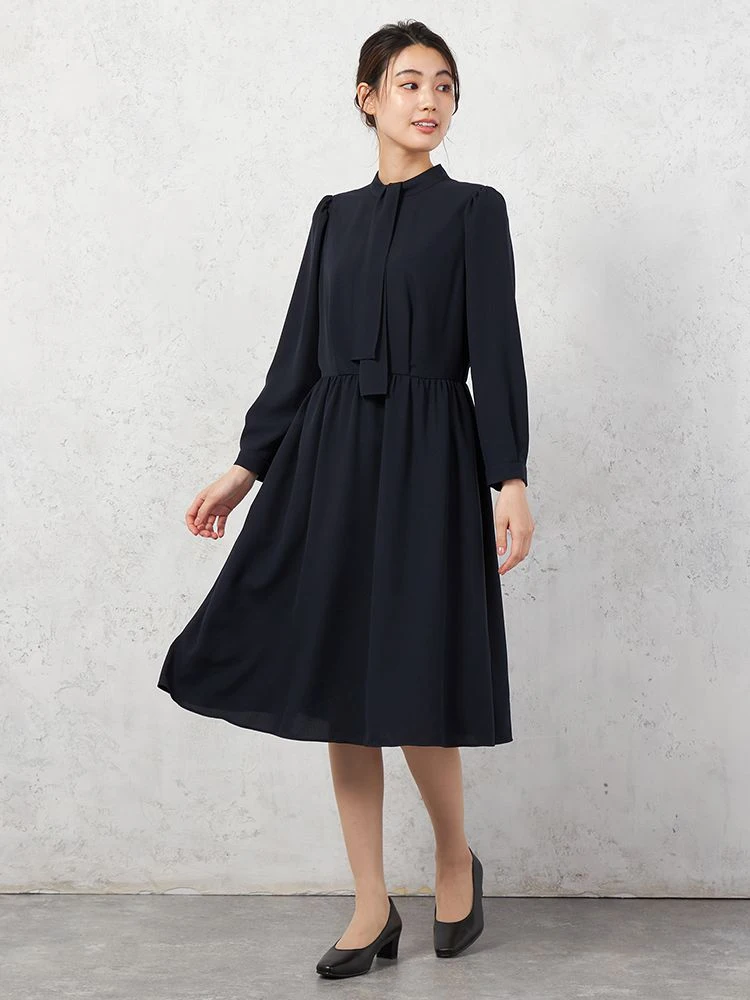 ボウタイやウエスト切り替えをプラスしたワンピースは1枚でも華やか、