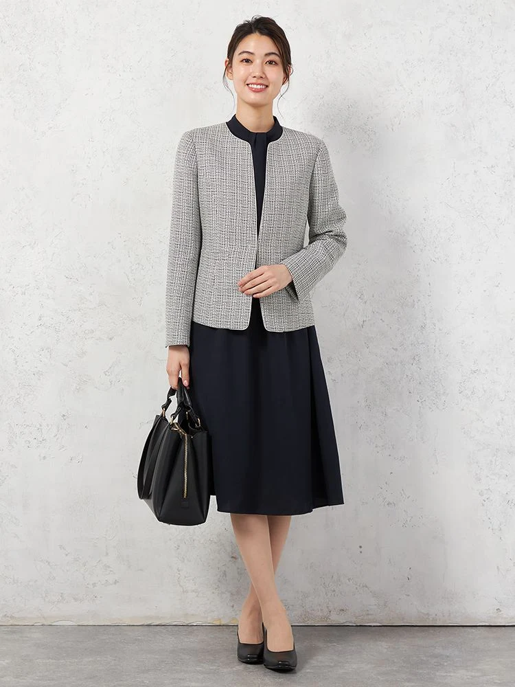 • 【セレモニーワンピ3点セット】ボウタイ取り外し2WAYワンピース/ツイード調ジャケット/V開きジャケット SOFFICE 通年【レディース】 1201416619