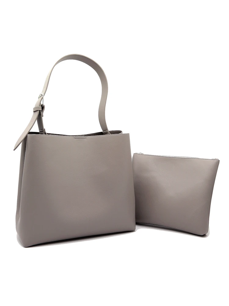 【INDIVI】ワンショルダーバッグ ポーチ付き A4対応 ブラック/グレー 無地 通年【レディース】(ブラック)
