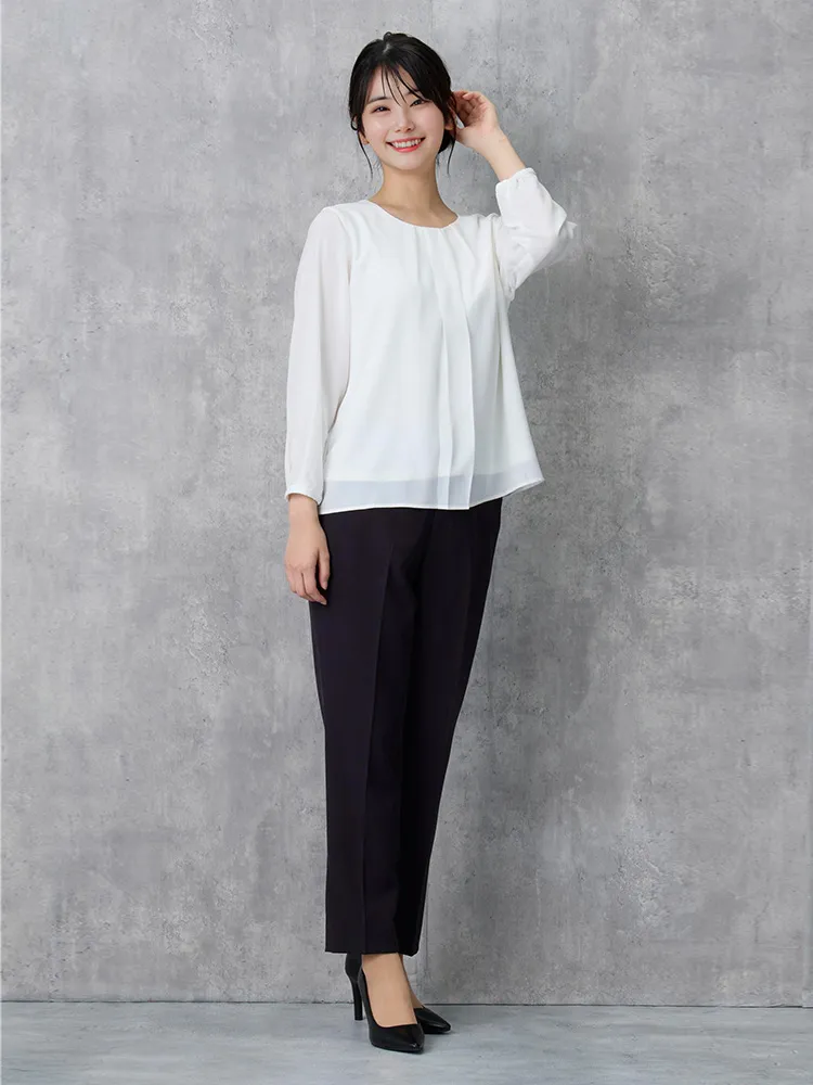 身頃が2枚重ねなので、1枚で着用しても下着が透けにくく、オフィスコーデにも最適です。