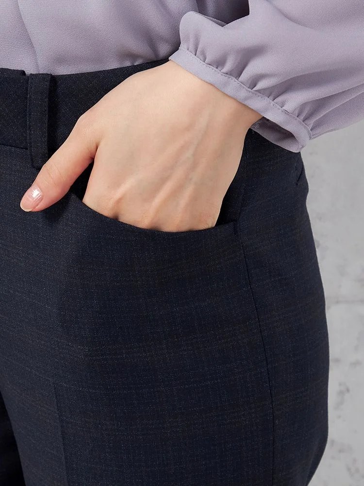 こなれ感のあるテーパードラインとさりげないチェック柄で、洗練された装いに仕上がります。