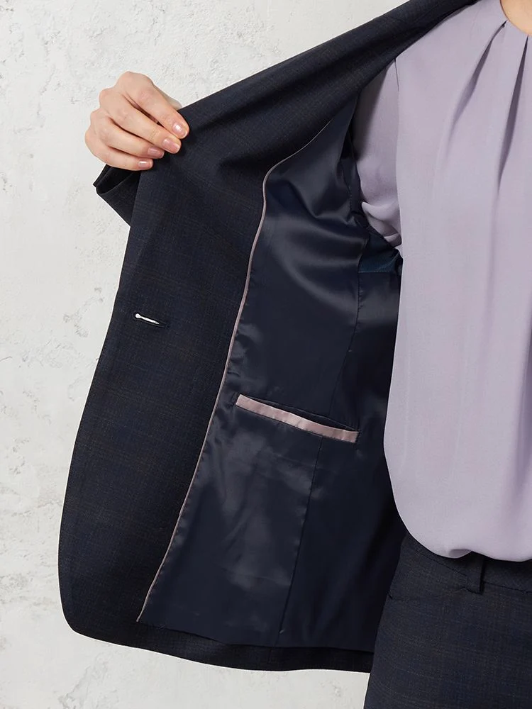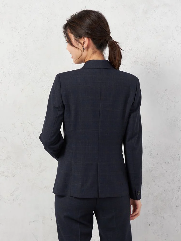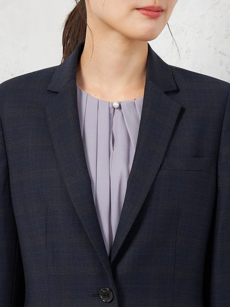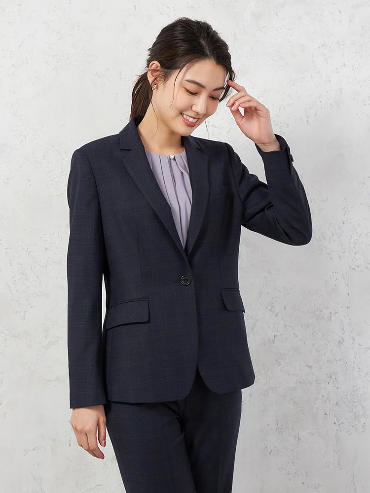 1つボタンのデザインで、シンプルかつスタイリッシュな印象を与えます。洗練されたシルエットが特徴です。