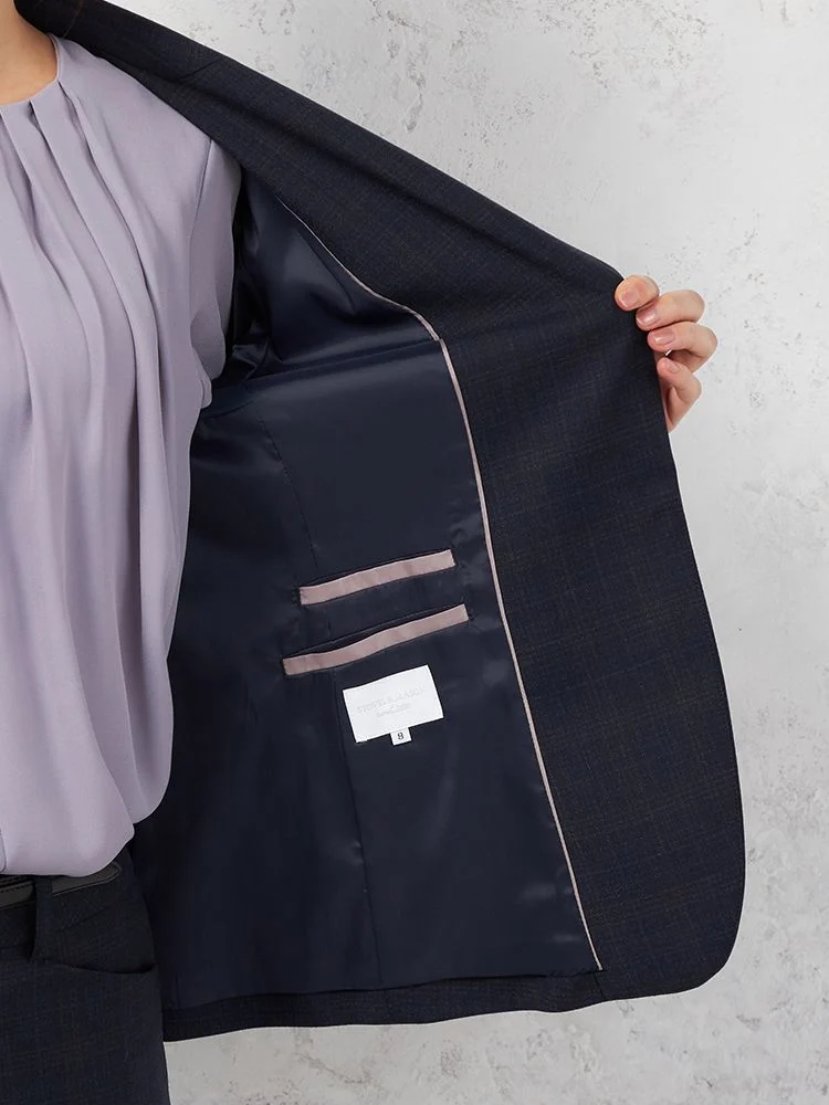 切り込みが1本のセンターベントデザインです。細身でスッキリとしたシルエットが特徴で、快適な着心地を提供します