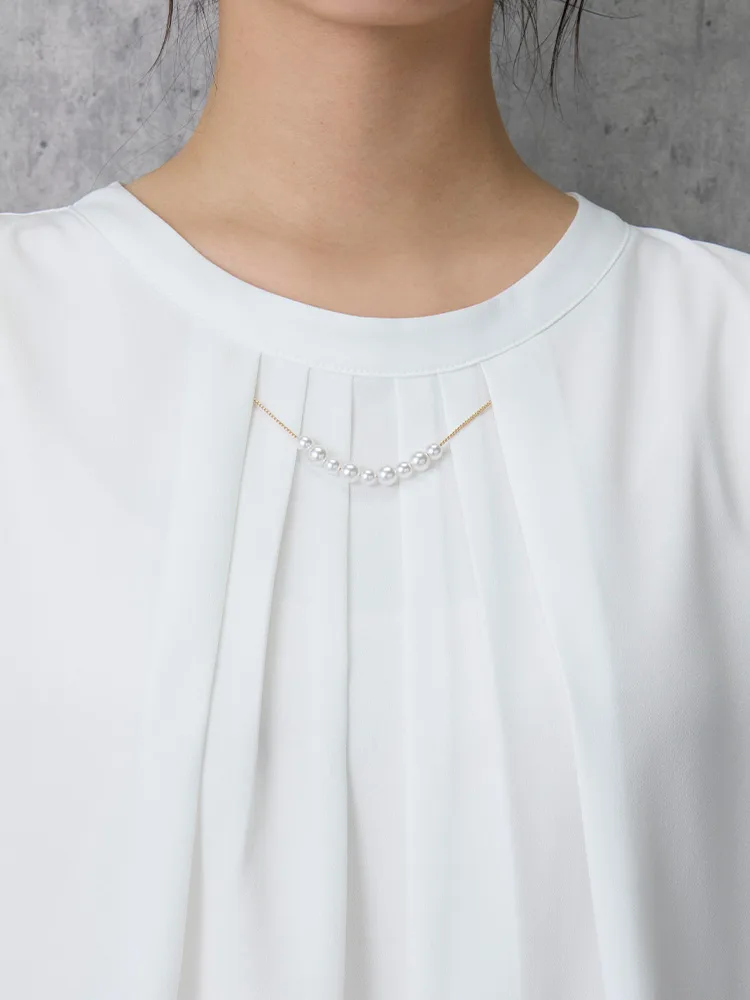 フロントのパールはコーデに合わせて簡単に取り外し可能。