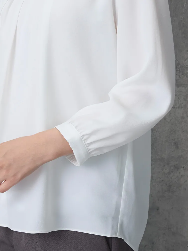 エレガントなデザインとカラーで幅広いシーンで活躍できる7分袖ブラウス。