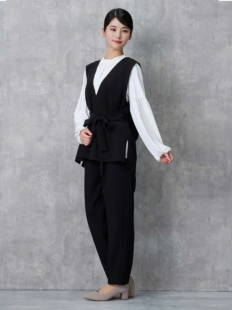 【ジレ3点セット】フォーマル ウエストリボン ジレ/パンツ/ブラウス ウォッシャブル ストレッチ セレモニー 通年 礼服【レディース】