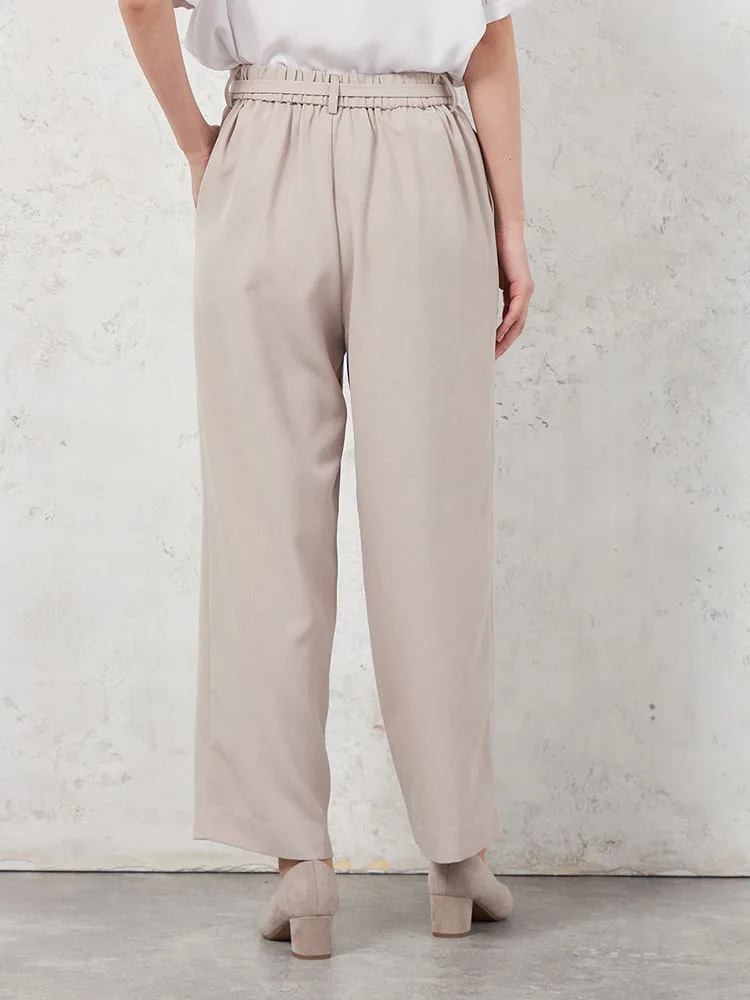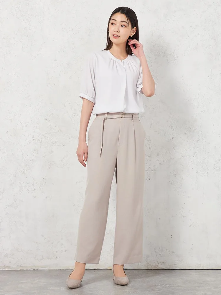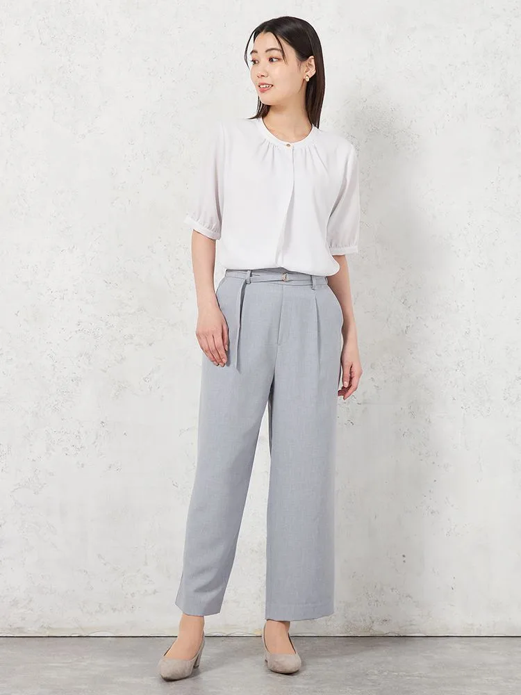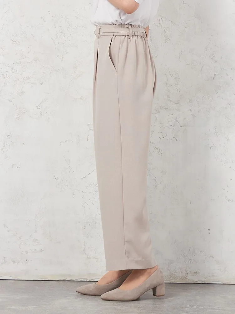 【ウォッシャブル】WALKPLUSシンプルタックテーパードパンツ麻調メッシュ素材無地春夏【レディース】