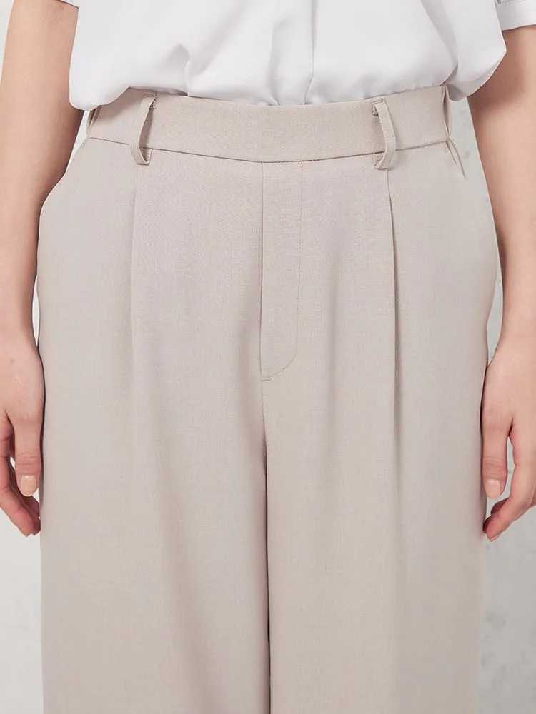 【高通気】WALKPLUSテーパードパンツリネンライクシンプルタック無地春夏【レディース】