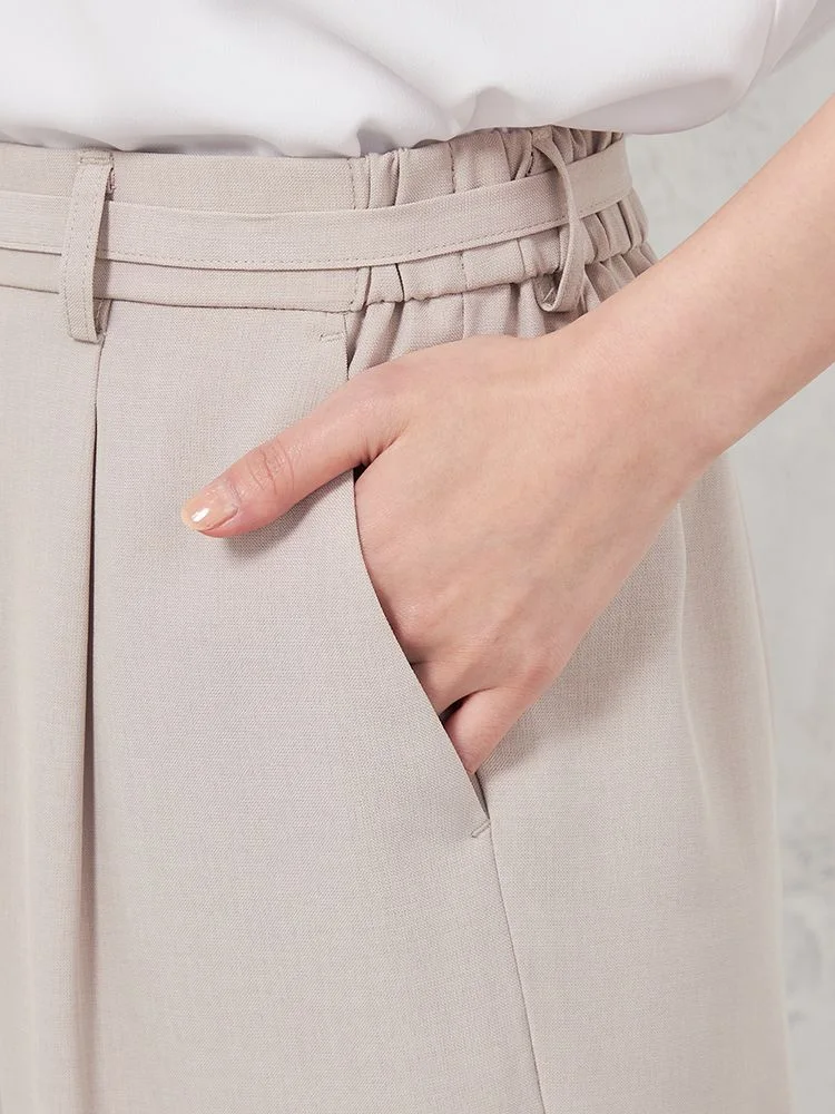 サラッとした麻調素材を使用した、暑い時期にぴったりのワイドパンツです。