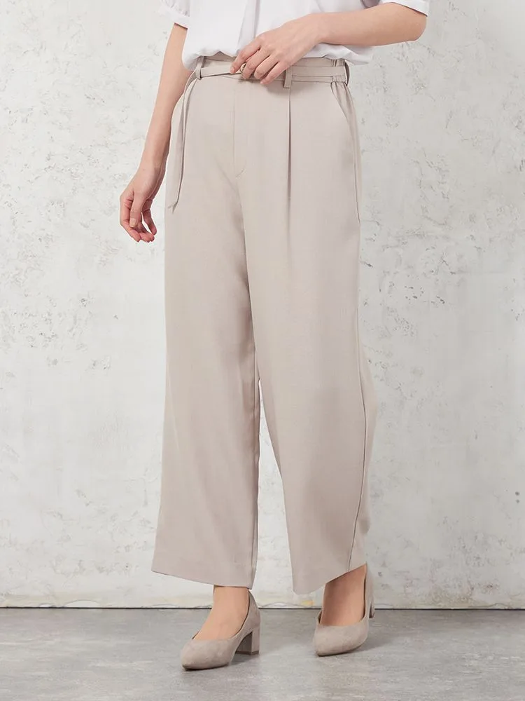 【高通気】WALK PLUS ワイドパンツ リネンライク ベルト付き 無地 春夏【レディース】(L.グレー)