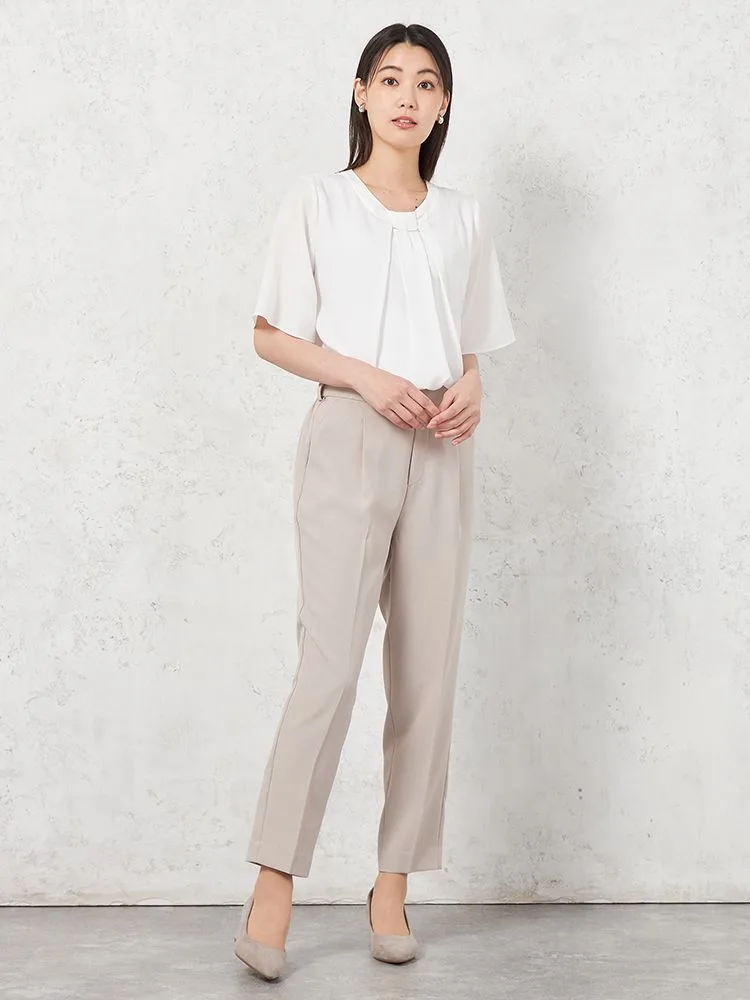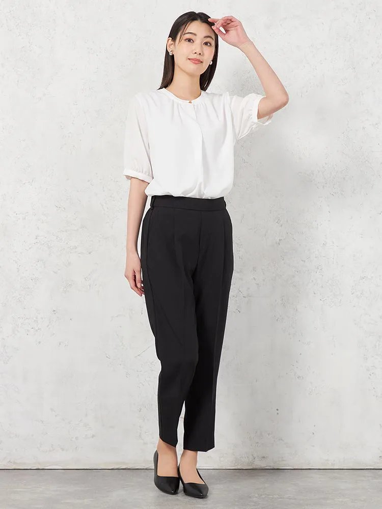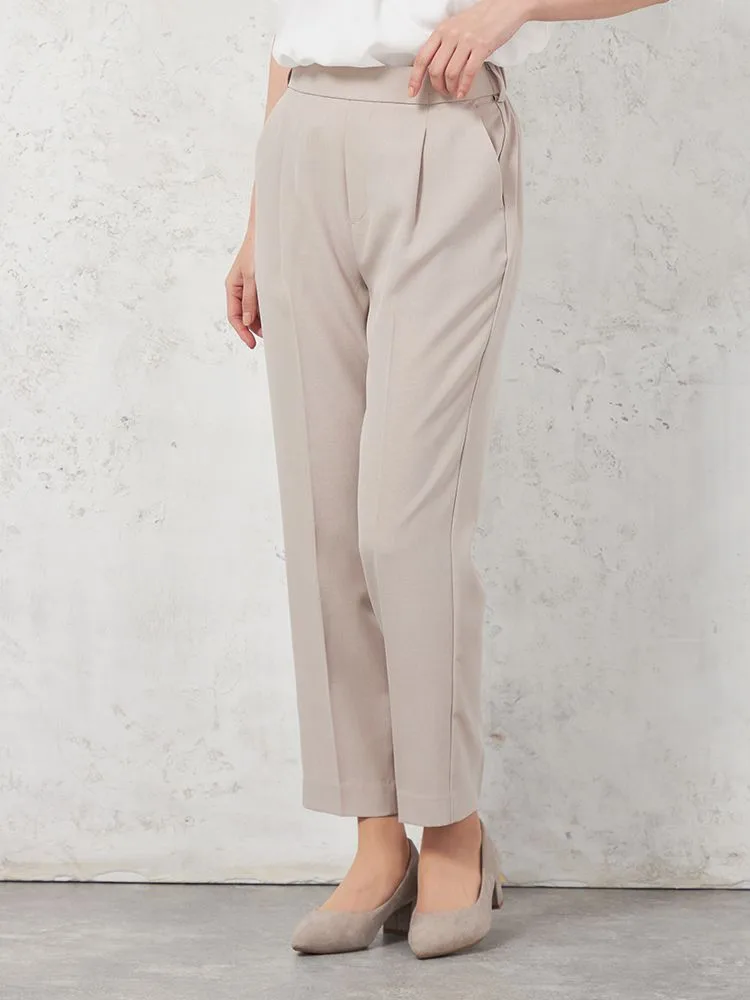 【ウォッシャブル】WALKPLUSシンプルタックテーパードパンツ麻調メッシュ素材無地春夏【レディース】