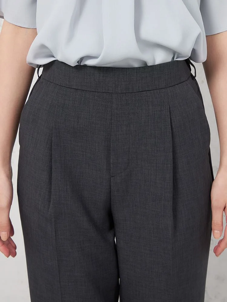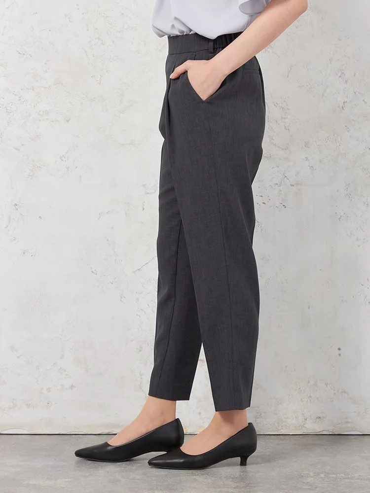【高通気】WALK PLUS テーパードパンツ リネンライク シンプルタック 無地 春夏【レディース】(C.グレー)