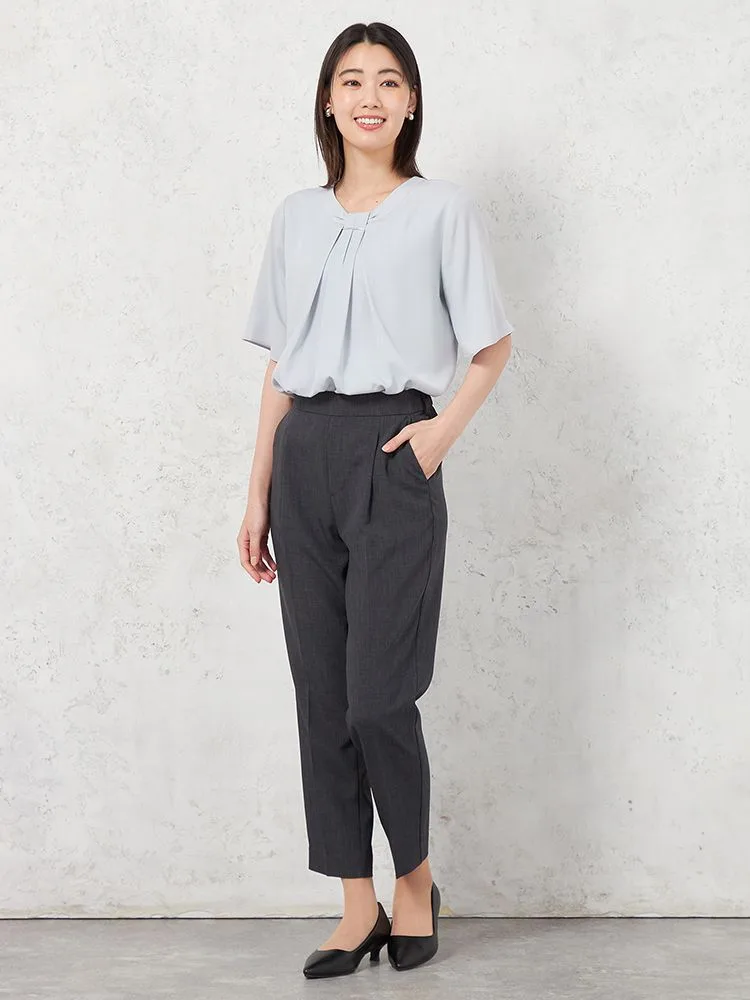 ウエスト部分は、簡単に履けるプルオン仕様と、伸縮ゴム使用で、お腹まわりの圧迫感がなく気軽に着用できます。