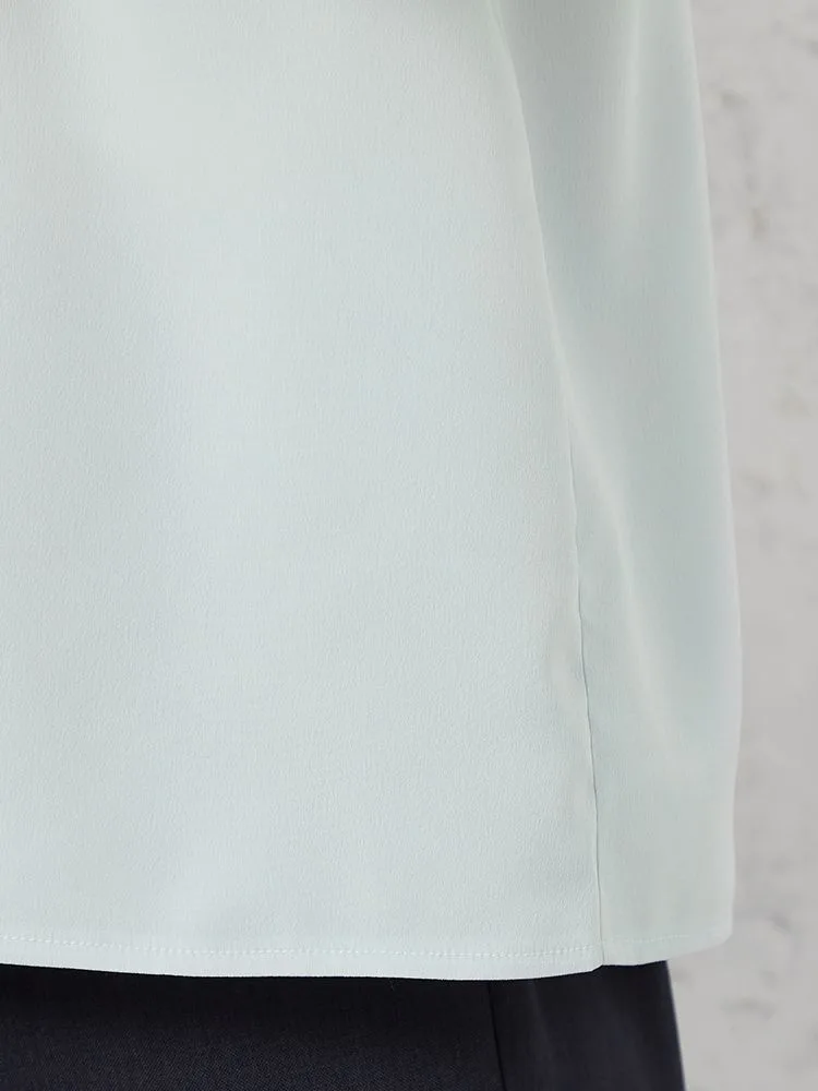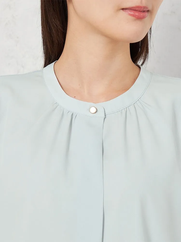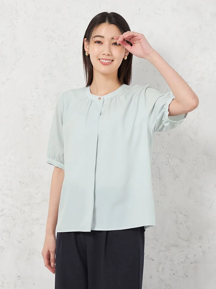 【UVカット】バンドカラ-ブラウス 5分袖 透けにくい ウォッシャブル SOFFICE 春夏【レディース】(L.グリーン)