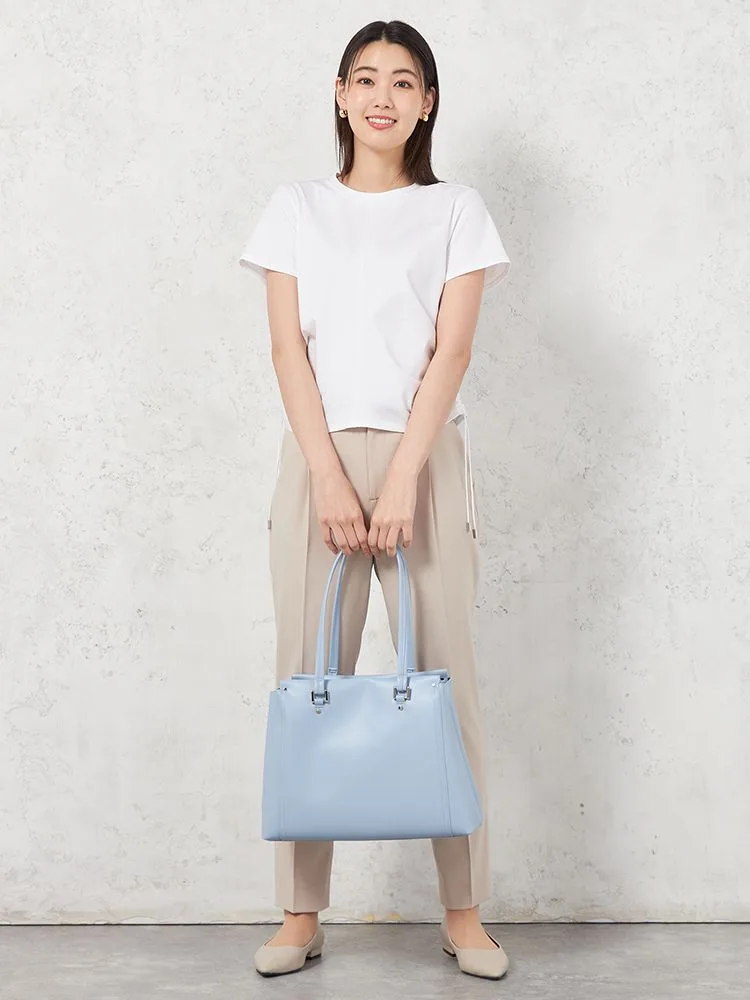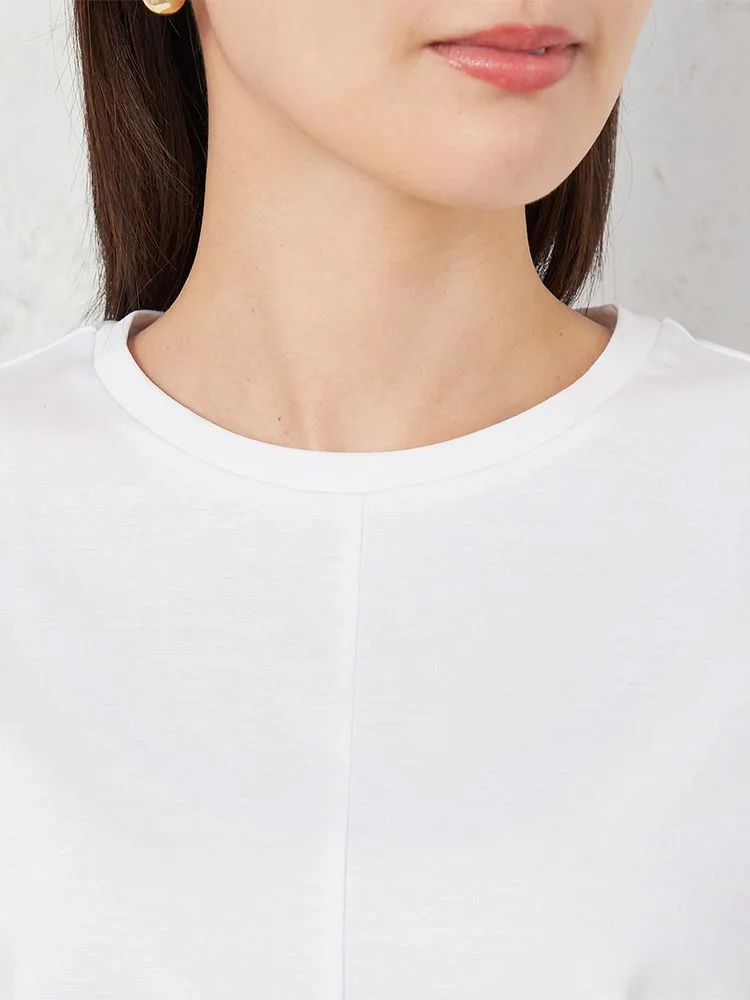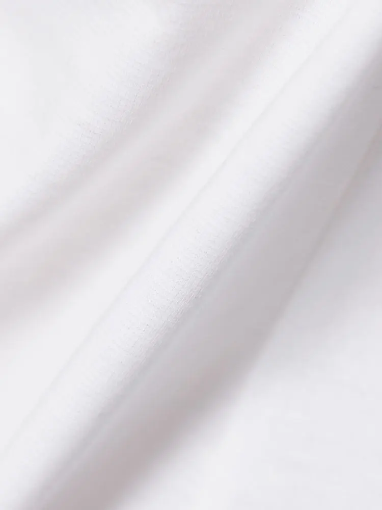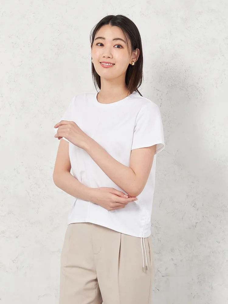 適度な肉感のポンチ素材で身体のラインを拾いにくく、またシルケット加工を施すことにより、滑らかな肌触りと上品な表面感に仕上がっています。