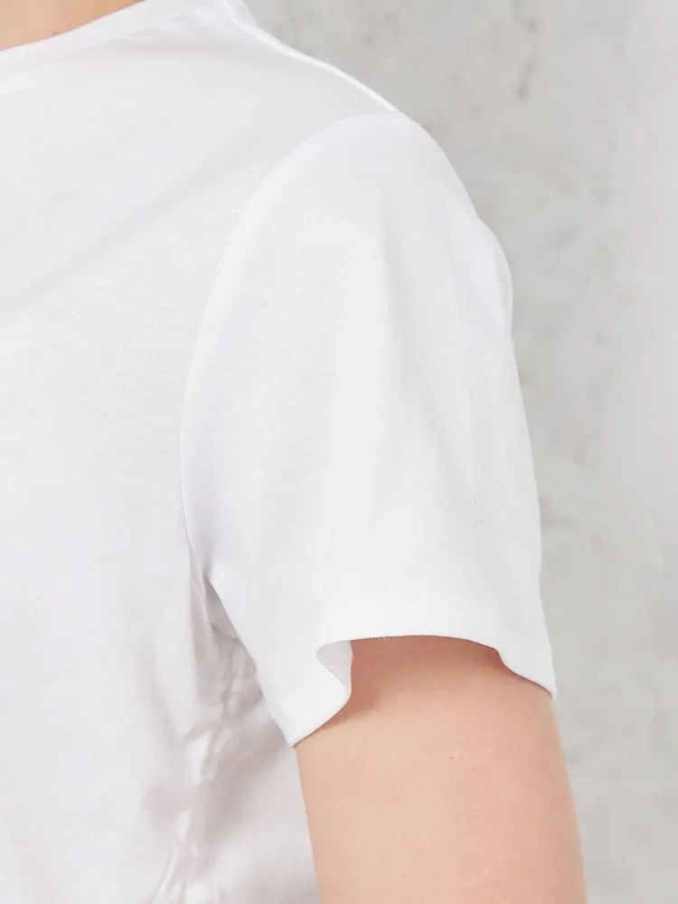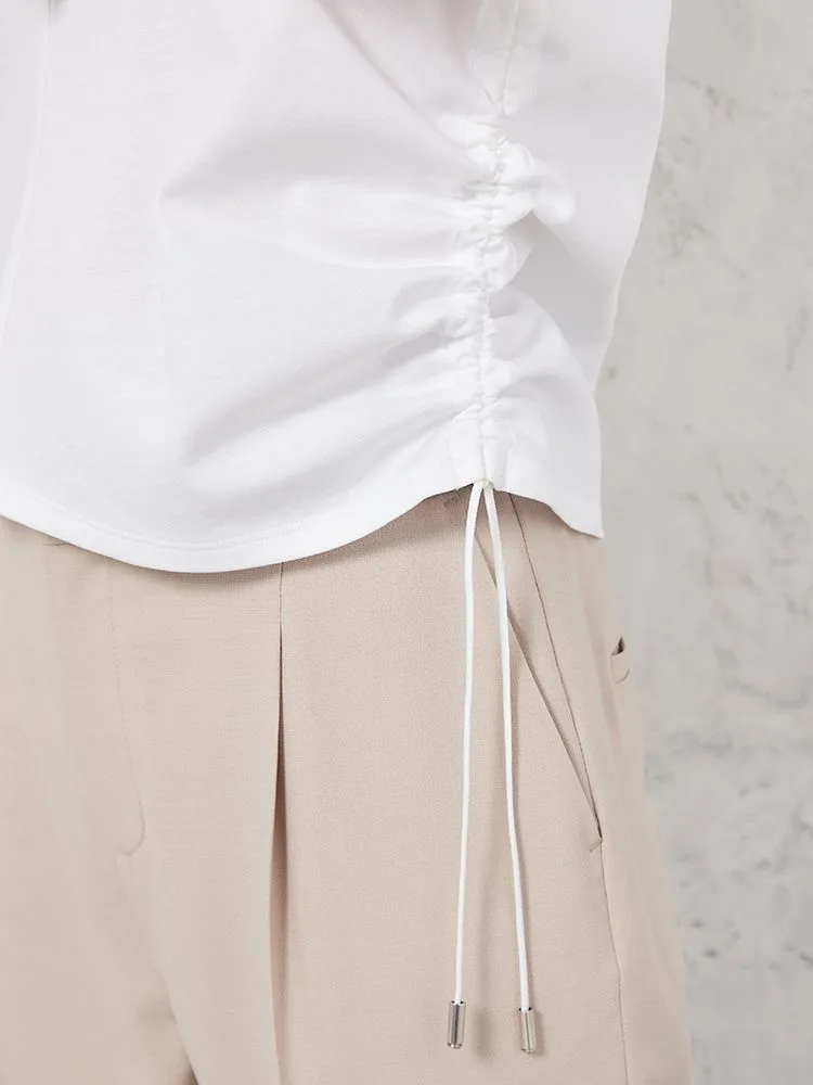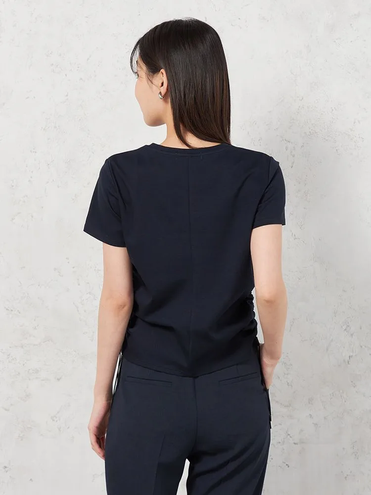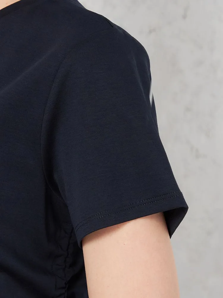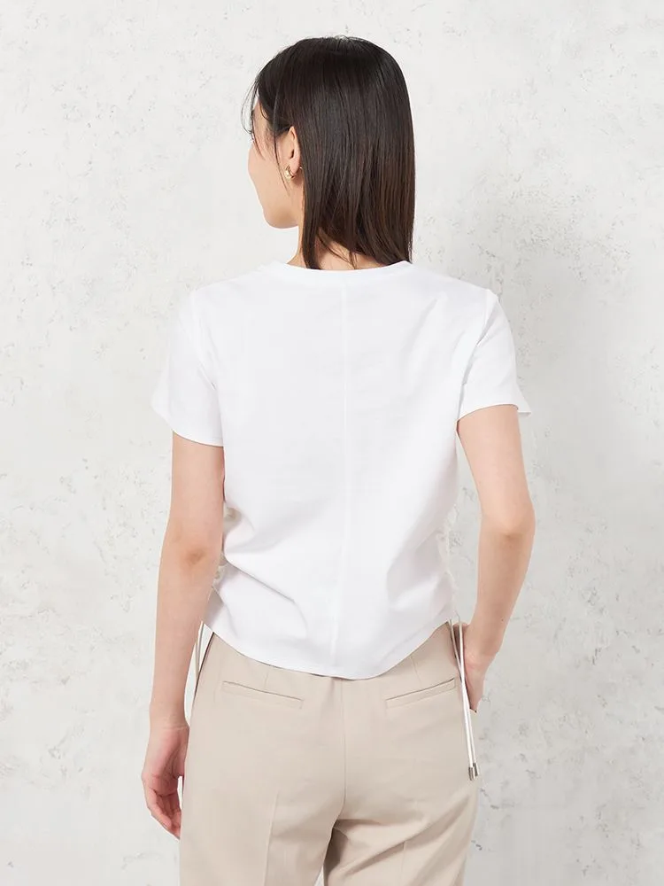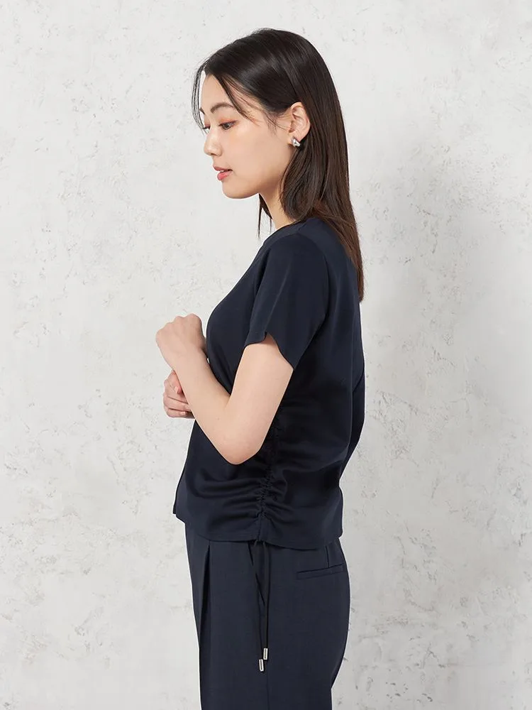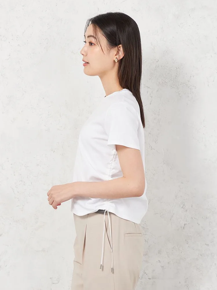 両サイドのドロストが目をひくTシャツです。