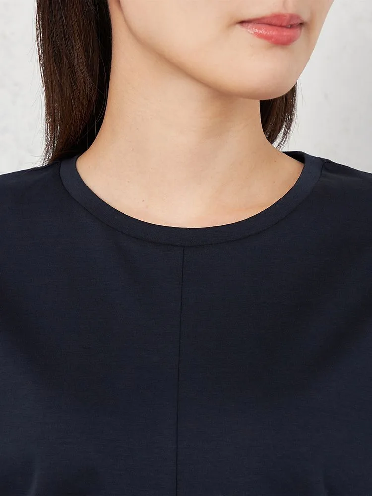 • ブラック 【INDIVI】シルケットポンチ 半袖 サイドドロストTシャツ 春夏【レディース】 1285403908