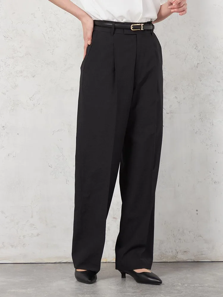 左右に1本ずつ生地の折り込みがあり、標準的なシルエットでシーンを選ばず上品なシルエットが楽しめます。