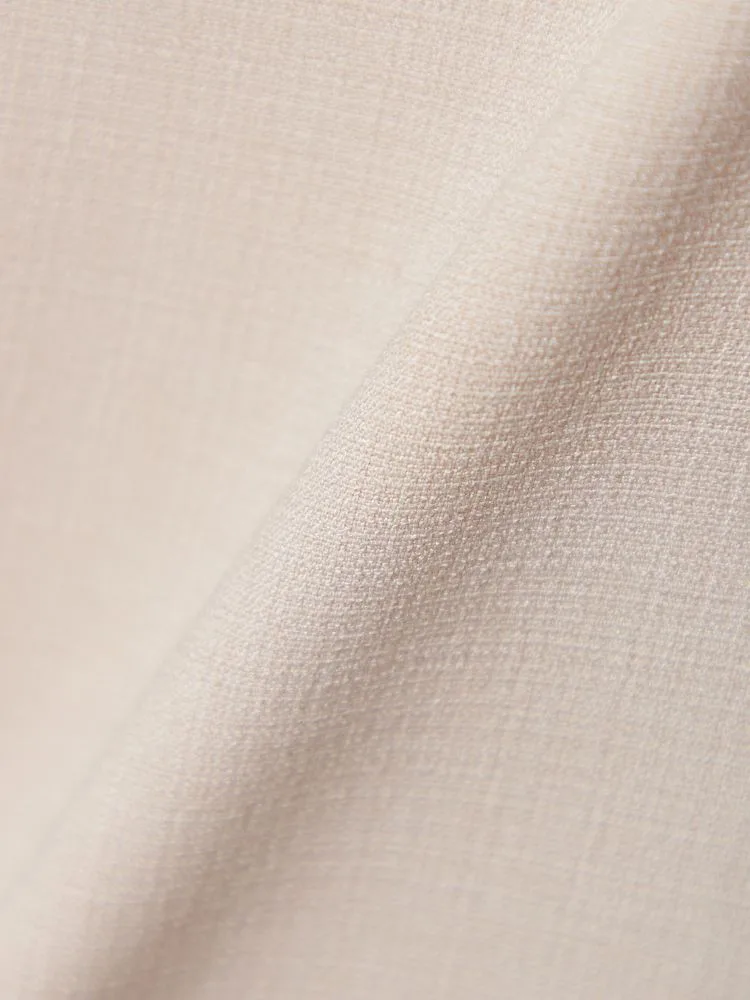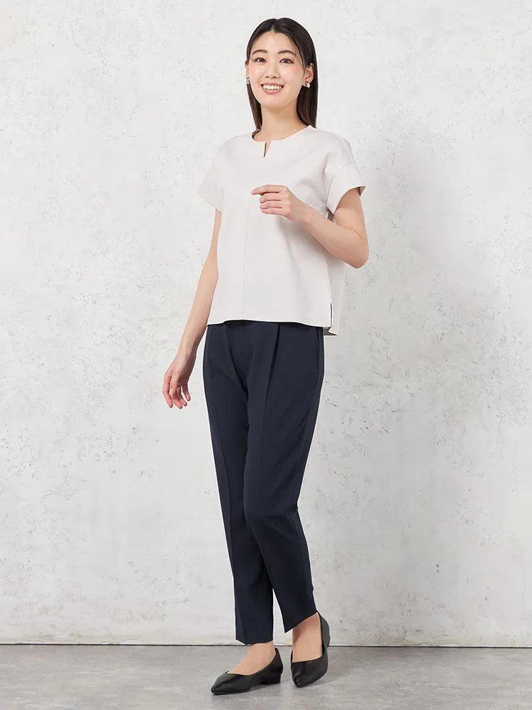 リネンライクなポリエステル混素材で、肌離れの良い風合い。表面感があり夏でも涼しくご着用いただけます。