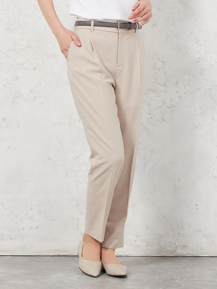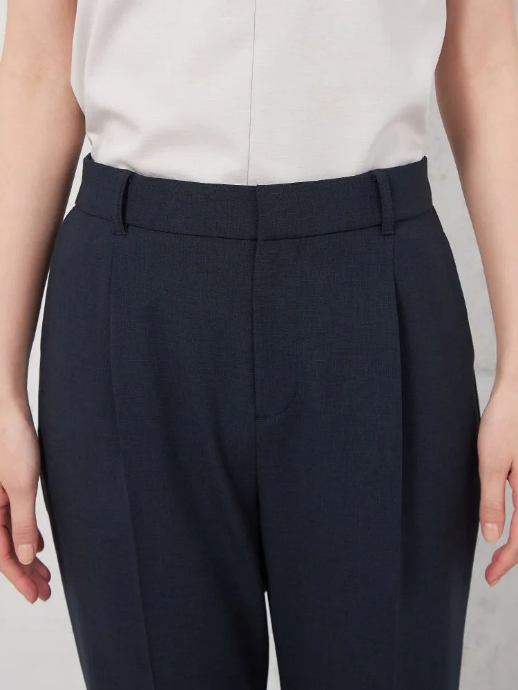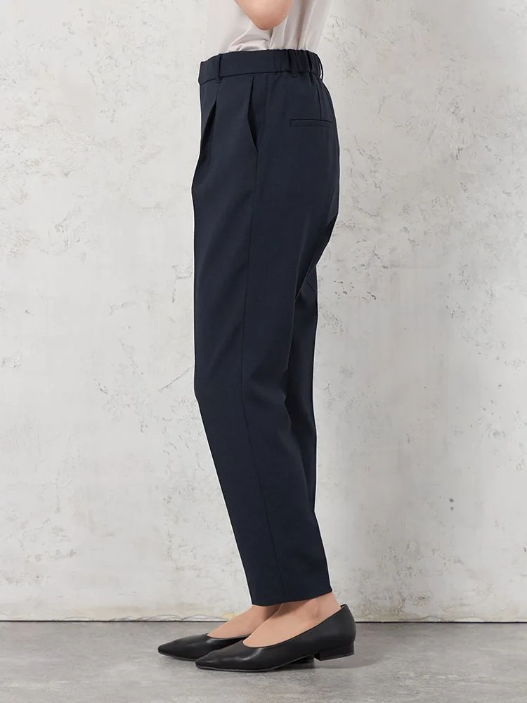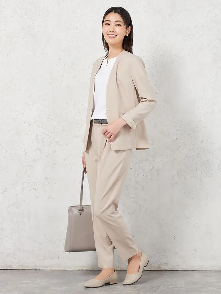 シルエットはきれい目のタックテーパード型になります。