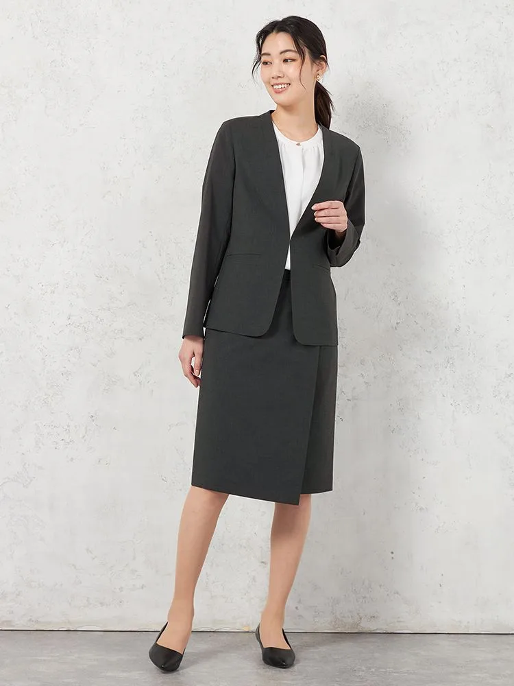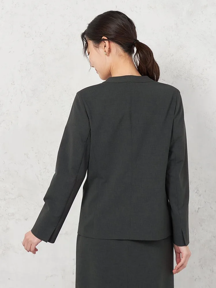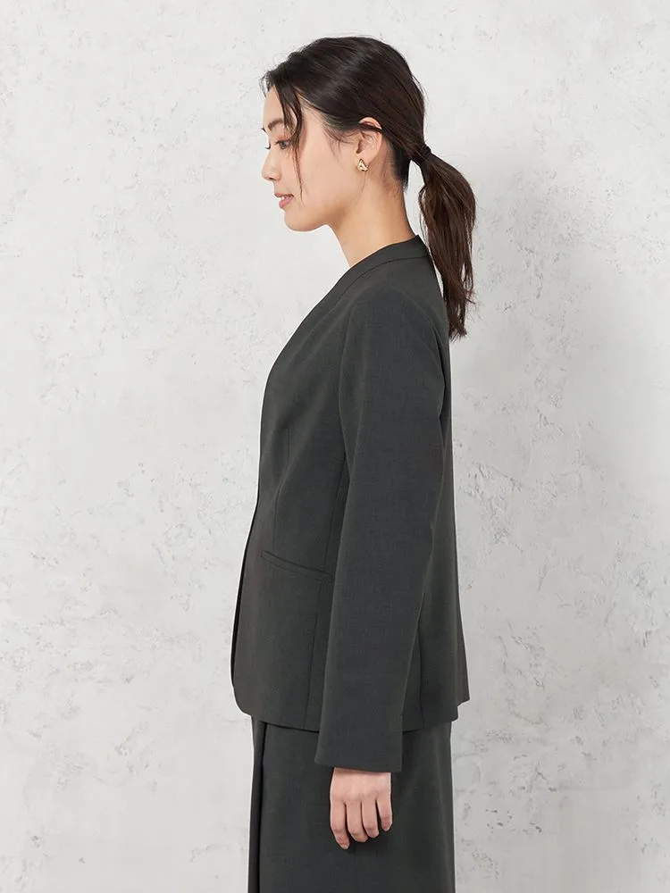 【ウォッシャブル】ノーカラージャケット リネンライクストレッチ UVカット SOFFICE 春夏【レディース】(C.グレー)