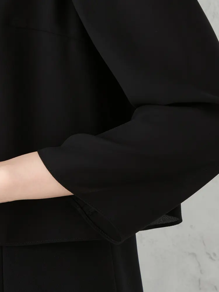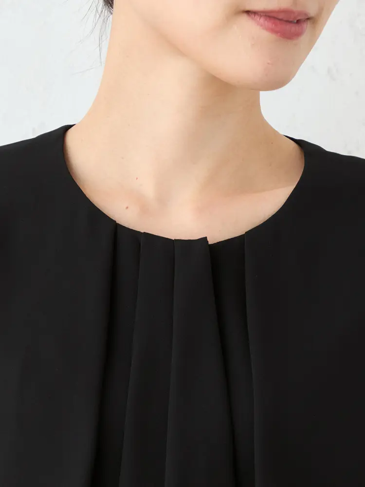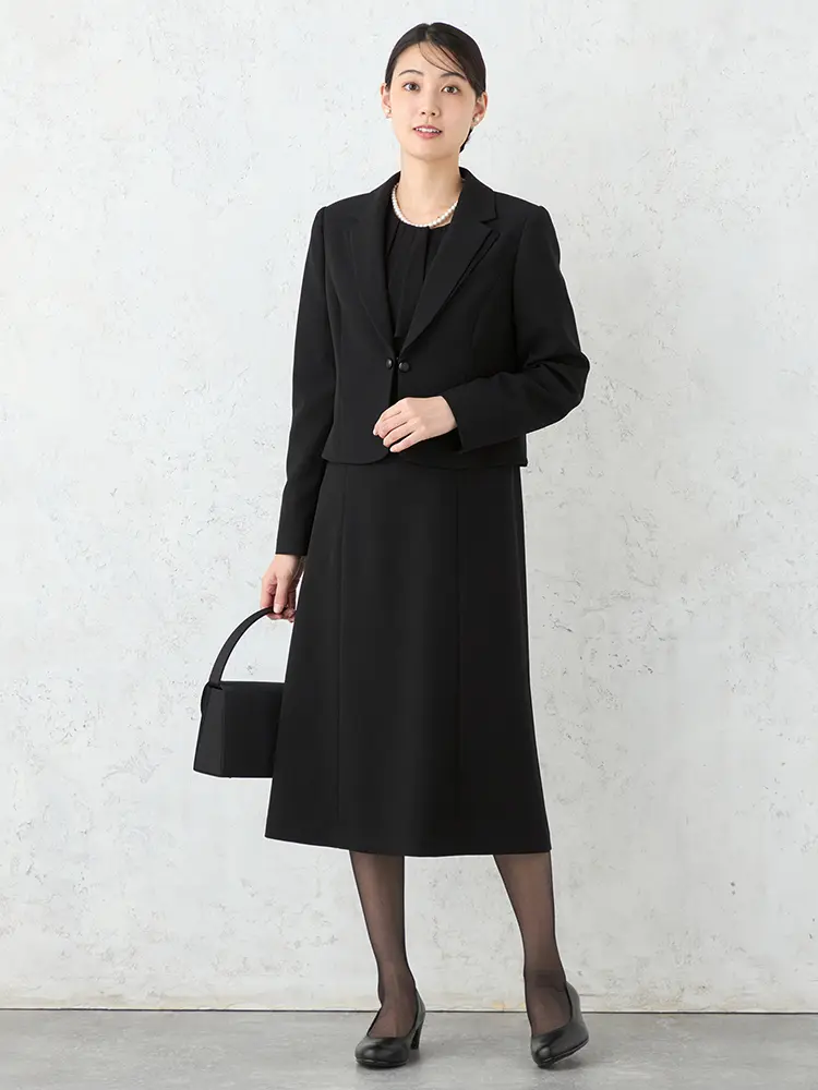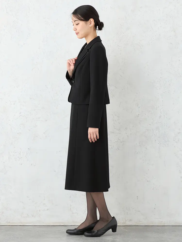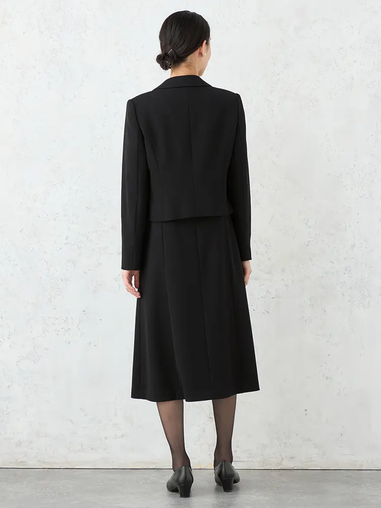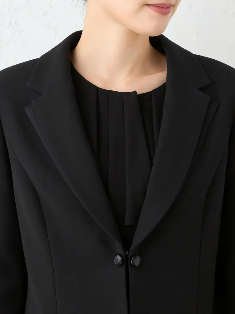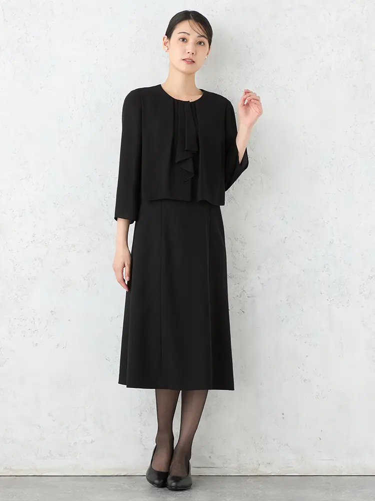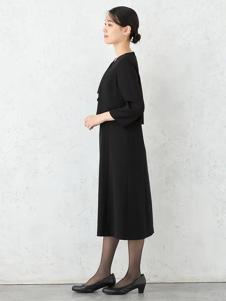 【即納】【WEB限定フォーマル】ロールカラーアンサンブルジャケット/ワンピース黒無地通年礼服【レディース】
