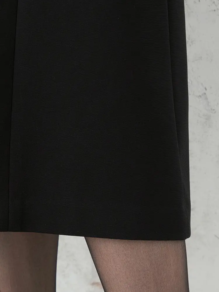 サテン衿を重ねたスッキリとしたテーラージャケットに、リボン調にデザインされた上品なワンピースのセット。
