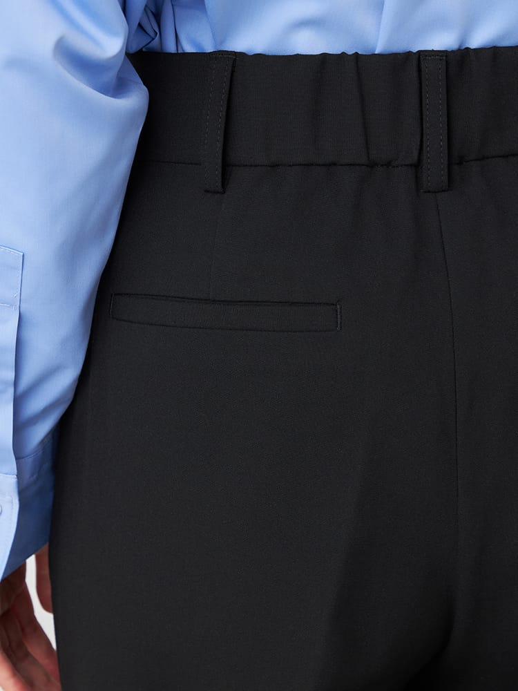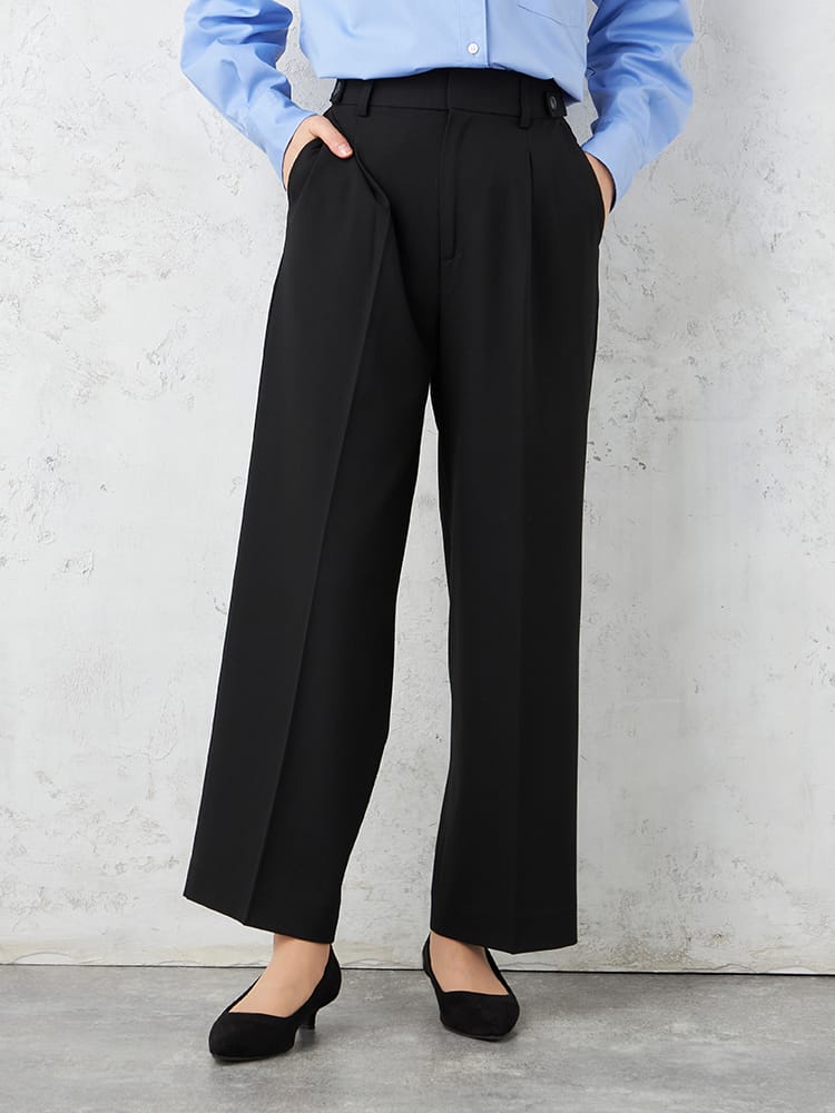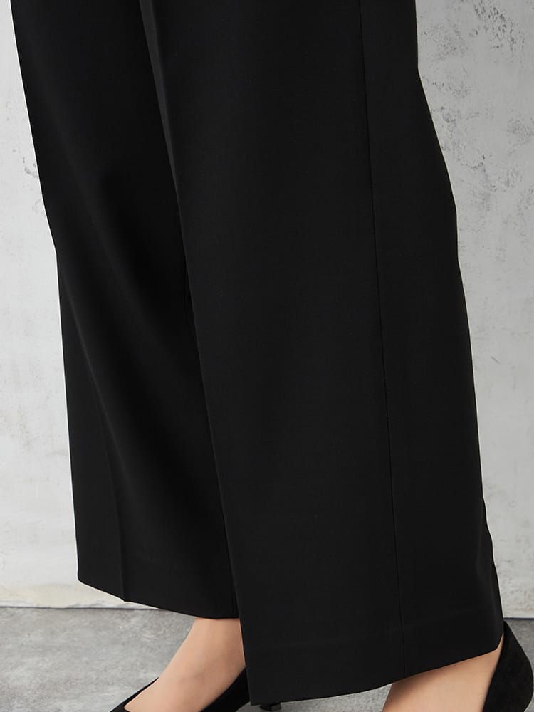 【ウォッシャブル】ウィメンズフルレングスパンツストレッチSOFFICEブラック無地通年【レディース】