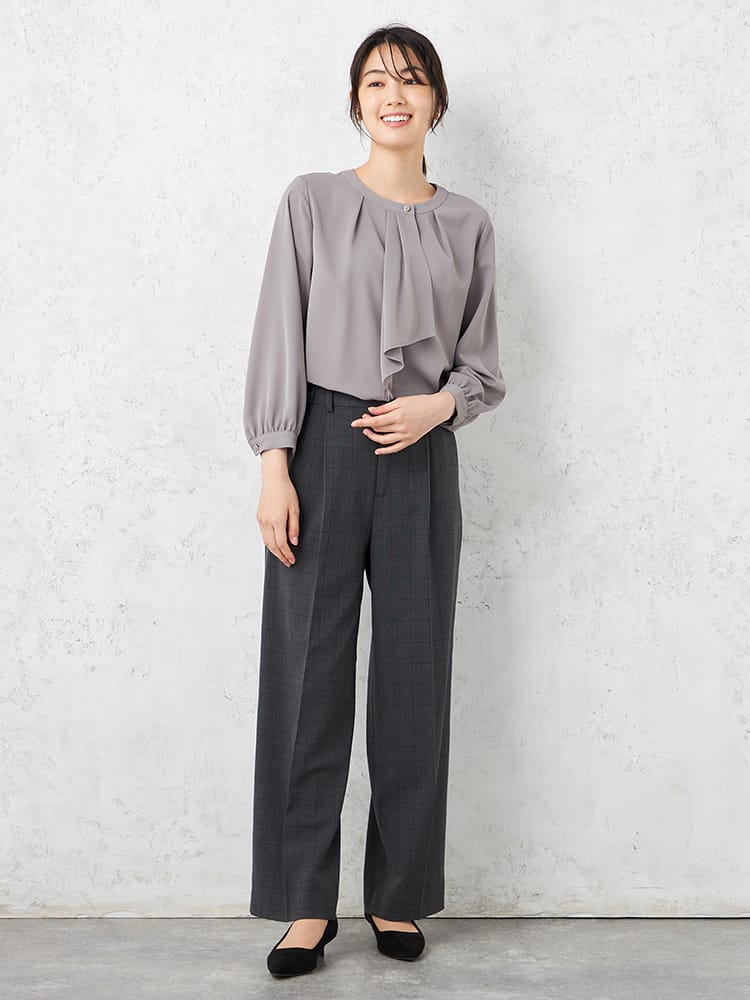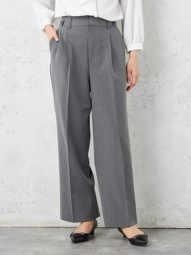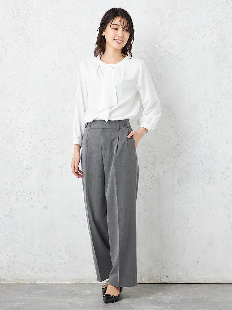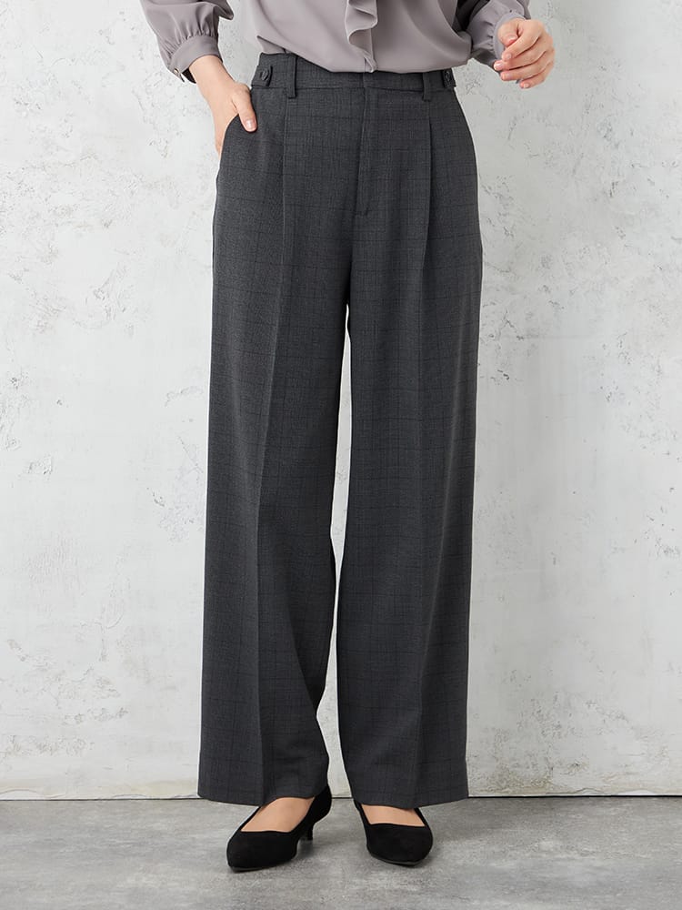 【WALKPLUS】 T/Rトロサイドタブワイドパンツ ウォッシャブル 通年 【レディース】(L.グレー)