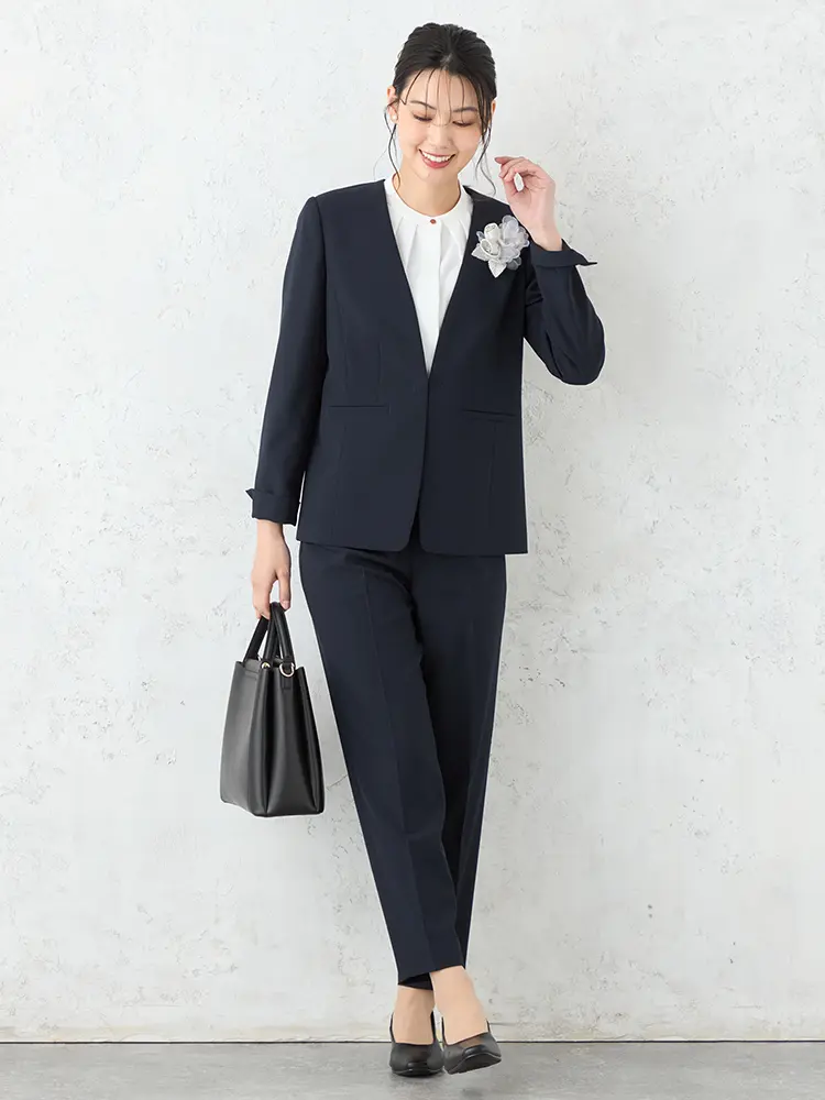 • ネイビー 【SOFFICE】セレモニー ジャケット+パンツ+ブラウス 3点セット フォーマル ソフィーチェ 通年 礼服 【レディース】 | はるやま公式通販