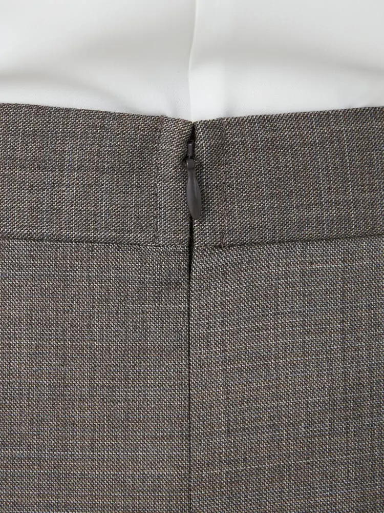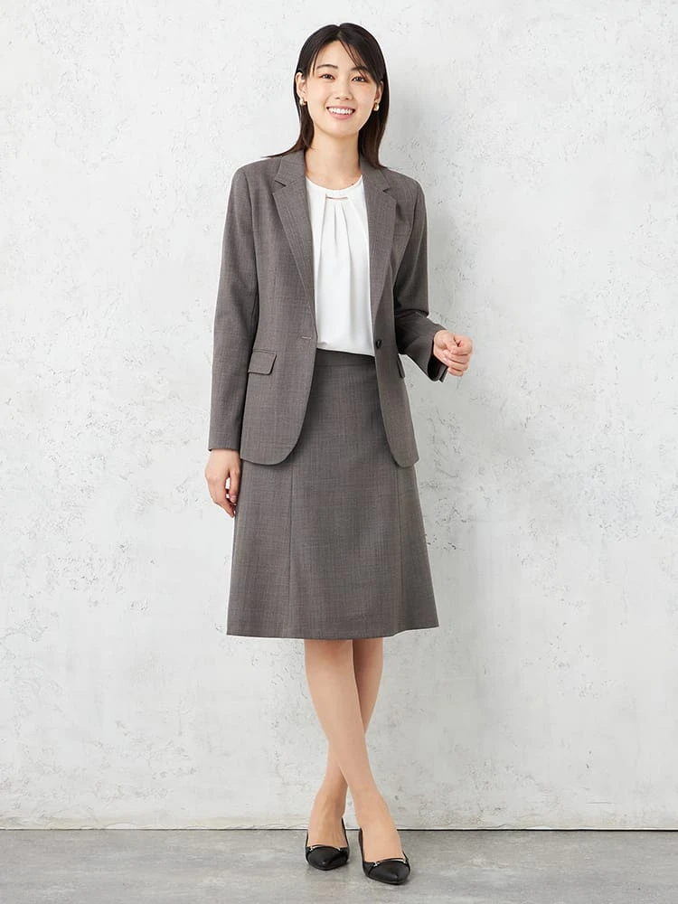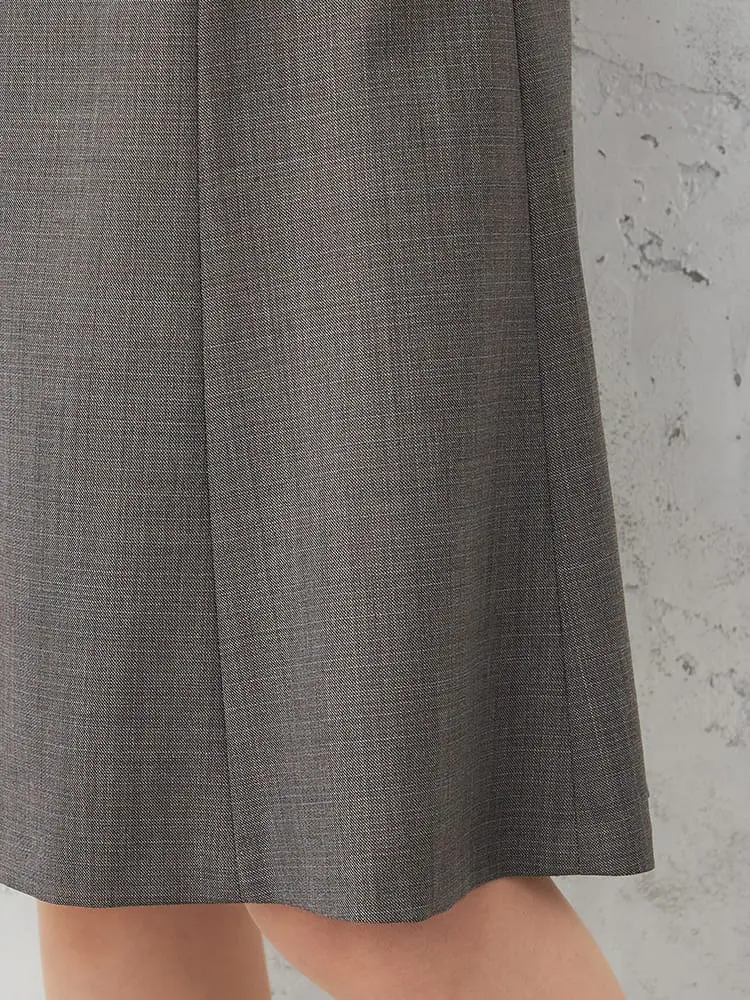 腰回りはすっきりとしたデザインで、膝が隠れる絶妙なスカート丈はジャケットとの相性も◎。