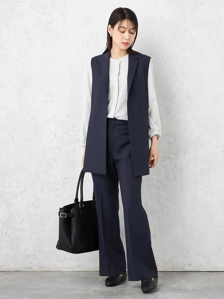 同素材のジャケットやジレとセットアップとして合わせていただくと、キレイ目できちんと感があるので学校行事、通勤用として幅広く活躍します。