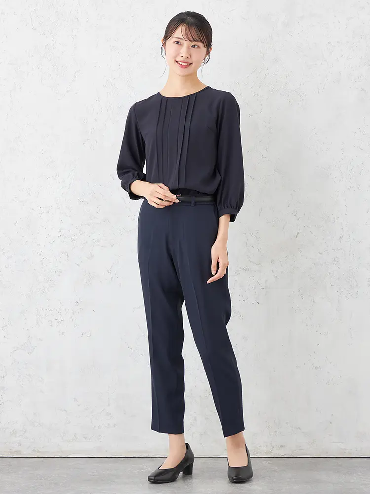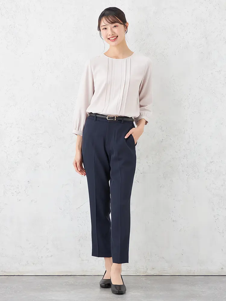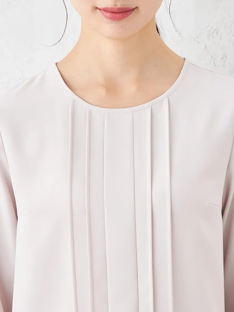 さりげないピンタックデザインが上品な、7分袖プルオーバーブラウスです。